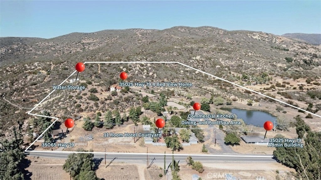 Over 29 acres with frontage on Highway 79 in Sunshine Summit, Warner Springs, this property is 4 APN's, a handsome two-story Spanish style home with vineyard and valley views, tennis courts, pool, sauna, commercial kitchen, communal dining room, lounge, separate reception/admin building, and courtyard consisting of 11 hotel-style rooms, laundry facilities, large running track circling a pond, and more. The adjacent home at 35065 Highway 79 which is a two-bedroom, two bathroom, 1102 esf is also included. Property was recently lodging and learning as rehabilitation facility, and before that enjoyed a long history as a backcountry hotel/ resort and restaurant. Zoning states A70 and RMH8 - Residential Mobile Home Park. Situated on the "North Mountain Wine Trail" of San Diego County and only a short jaunt to various airports and tourist destinations, the commercial possibilities here are vast! Keep an eye out for updated information and photos, coming soon.