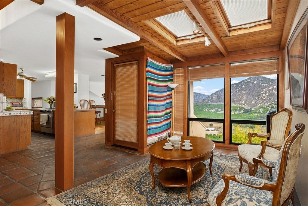 Beamed Ceilings, Balcony, Ceiling Fan(s), Eat-in Kitchen, See Remarks, Tile Counters, All Bedrooms Down