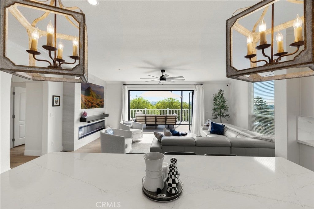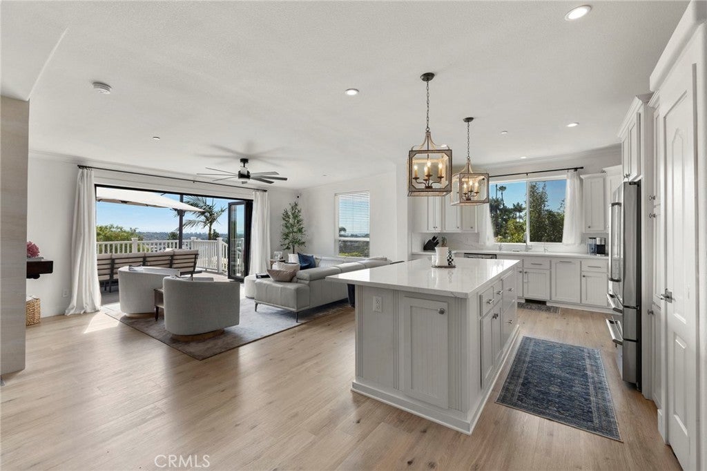 Ceiling Fan(s), Country Kitchen, Crown Molding, Living Room Deck Attached, Open Floorplan, Quartz Counters