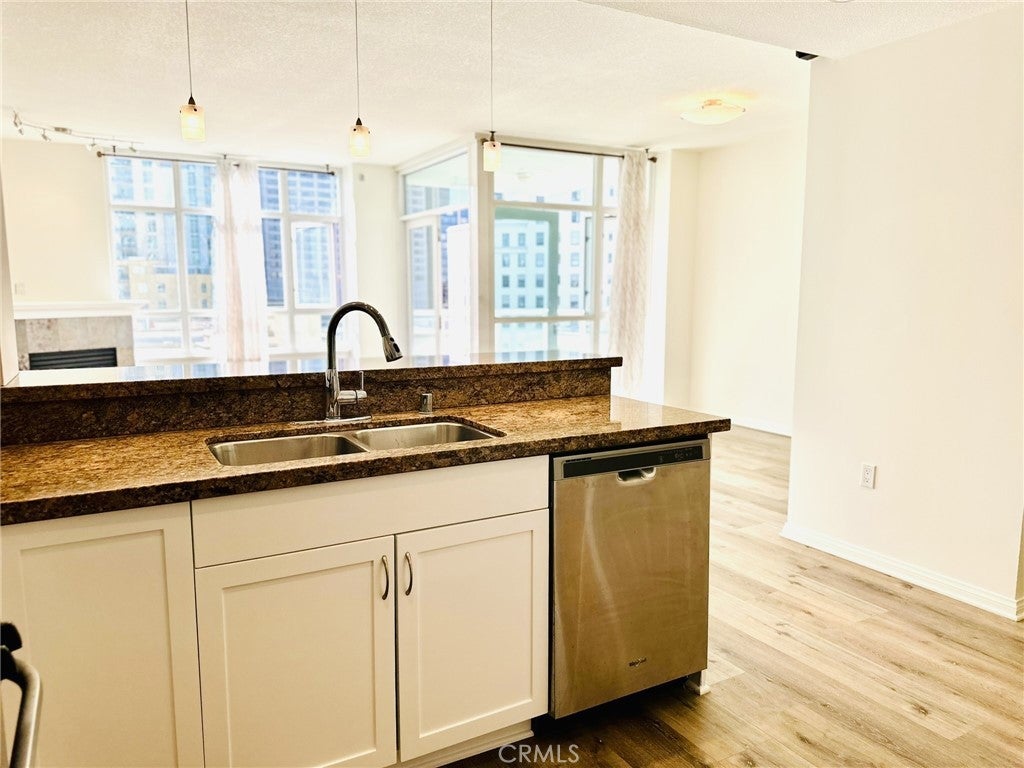 Recent home improvements: The property was briefly withdrawn to complete kitchen and two bathroom upgrades, along with fresh interior paint, and is now move-in ready. Timely consideration is encouraged. Step into a home filled with natural light, calm energy, and open city views that include the Coronado Bridge, skyline, and historic El Cortez — visible from the living area, bedrooms, and private balcony. Perfectly positioned on the sunny side of Discovery at Cortez Hill, this residence offers a rare balance of downtown excitement and peaceful comfort. Enjoy walking distance to the Gaslamp District, Petco Park, and Little Italy, while being just an 8-minute drive to San Diego Airport, with easy access to the 163 and 5 freeways and plenty of nearby street parking for guests. This bright 2-bedroom, 2-bath home features an open kitchen with granite countertops, stainless-steel appliances, and a wine chiller that flows into a welcoming living area with luxury vinyl plank floors and a cozy fireplace. Two non-tandem parking spaces and a private storage unit add the convenience and value every downtown buyer hopes to find. Discovery is celebrated for its quiet luxury, 24-hour concierge, elegant lobby, business center, rooftop lap pool and spa, fitness center with sauna and steam room, and a tranquil second-floor garden — offering resort-style living just steps above the heart of downtown. Important Note: Public records show approximately 1,133 sq. ft., while prior MLS listings measured about 1,220 sq. ft. Buyers and their agents are encouraged to verify all measurements, square footage, and details to their own satisfaction.