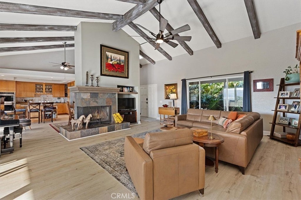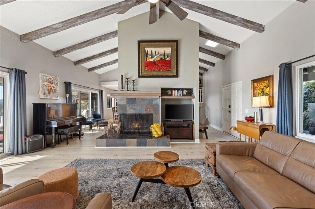 Price Correction ... Owner must Sale for Job Relocation Perched atop the sought-after hills of North County’s Twin Oaks Valley Farms, this exquisite split-level ranch-style estate offers an unparalleled blend of natural beauty, privacy, and elegant country living. Set behind gates on a serene 2.99-acre lot, this beautifully designed residence features an open-concept floor plan, soaring vaulted ceilings, and breathtaking panoramic views with unforgettable sunsets. Located at the end of a private cul-de-sac, the property exudes peace and tranquility amidst a backdrop of pristine nature. The main level welcomes you with a spacious, open-concept living, dining, and kitchen area that seamlessly extends to a full-length, covered balcony—perfect for entertaining or simply soaking in the stunning vistas. The kitchen is a true chef’s delight, complete with an expansive granite island, sleek granite countertops, maple cabinetry, and newer stainless steel appliances. A standout feature is the captivating California Room—an elegant, inviting space ideal for year-round gatherings. With a large fireplace, ample seating, and views of lush greenery, mature avocado trees, dramatic boulders, and unforgettable sunsets, this is the ultimate indoor-outdoor retreat. The main-level primary suite offers a private sanctuary, with direct access to both the balcony and California Room. Drift off to sleep with the gentle sounds of rustling trees, distant owls, and other native wildlife under a clear, starlit sky, free from light pollution. Awaken to the soothing sound of a cascading waterfall just beyond your balcony and the peaceful glow of sunrise over the hills. Upstairs, you’ll find two generously sized bedrooms, each with sliding glass doors leading to a shared, covered balcony that invites nature in. A full bathroom with a soaking tub and an open loft area with built-in office space complete the upper level, offering functionality with style. Twin Oaks Valley Farms represents the finest in country living—while being conveniently located within the city of San Marcos.Enjoy proximity to Carlsbad beaches (12 miles), Palomar College and CSU San Marcos (3 miles), the University of St. Augustine (2 miles), and leading vocational schools like Smith Chason, WCUI, and Pima Medical Institute (3 miles).