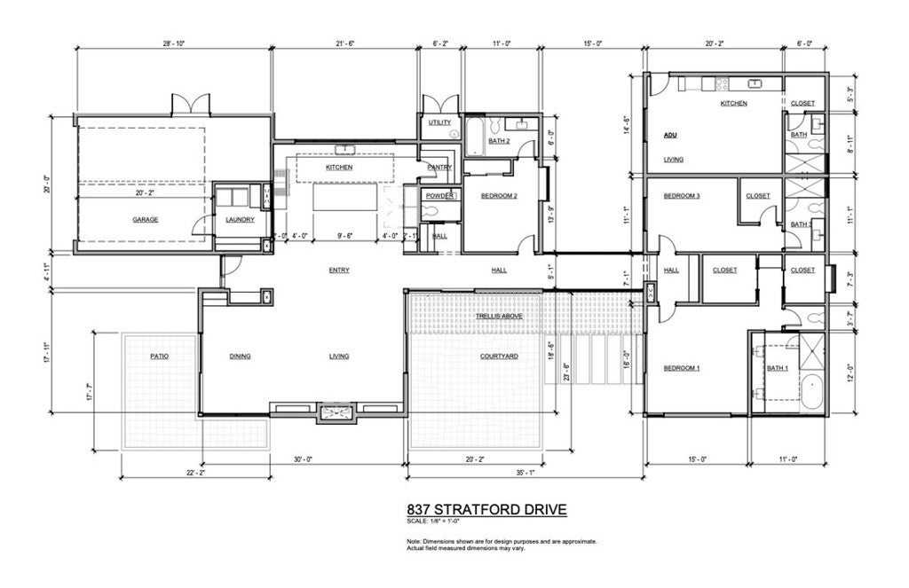 Encinitas Highlands 0.26-Acre Lot | Modern Coastal Home Plans + ADU Rare opportunity to build in one of Encinitas’ most desirable neighborhoods. This 0.26-acre parcel sits just blocks from Moonlight Beach and downtown, close to surfing, cafes, restaurants, and boutique shops. Architectural plans by award-winning Field X Studio are included for a modern single-level home with three bedrooms, three-and-a-half baths, a two-car garage, and an attached ADU. The design offers 2,799 square feet of living space with open areas that connect to an outdoor courtyard and orchard, plus a 450-square-foot garage, 91 square feet of storage, and a 422-square-foot attached ADU. The lot is ready with gas, electric, and water utilities already on site, reducing time and cost in the building process. The Coastal Development Permit is nearing completion, and grading and building permits are ready to submit. The generous lot size provides privacy and the possibility of ocean views with the addition of a second story. Located west of I-5, 837 Stratford Drive offers convenient access throughout North County while maintaining a quiet residential setting. Within minutes are Moonlight Beach, Swami’s, the Coaster station, and downtown Encinitas. This property offers a unique opportunity to create a modern coastal home or investment in one of San Diego County’s most sought-after beach communities.