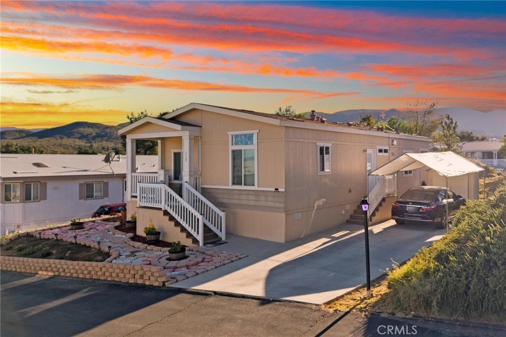 HUGE PRICE IMPROVEMENT - Best bargain in the area!!! Seller is motivated. Fresh principal residence, built in 2014, this two-bedroom, two-bathroom home sits tucked back into the VERY young and fresh 55+ community of Stone Ridge, Sunshine Summit, Warner Springs. Here you own your own lot! So there is no space rental, ever, and your monthly HOA fees cover your water, waste collection, sewer, and the community amenities and common areas such as the fully stocked catch and release fishing ponds, the heated pool and spa, bbq, walking trails, and of course the community hall which is fully equipped with billiards, dance floor, library, commercial kitchen, meeting areas and more. This home is already darling, light and bright, but has been customized even further to include a driveway shade and storage shed, landscaping, pavers, and an outdoor covered PRIVATE TIKI LOUNGE where you can sip a refreshing libation, listen to the frogs and wildlife, and admire this Darksky Community's unbelievable night skies. A short path winds you back to a front row seat of one of the park's more private water features. You have plenty of neighbors, but you feel like you're the only one here! All appliances are included, several of which are never, or hardly ever, used! Furnishings may be negotiable.