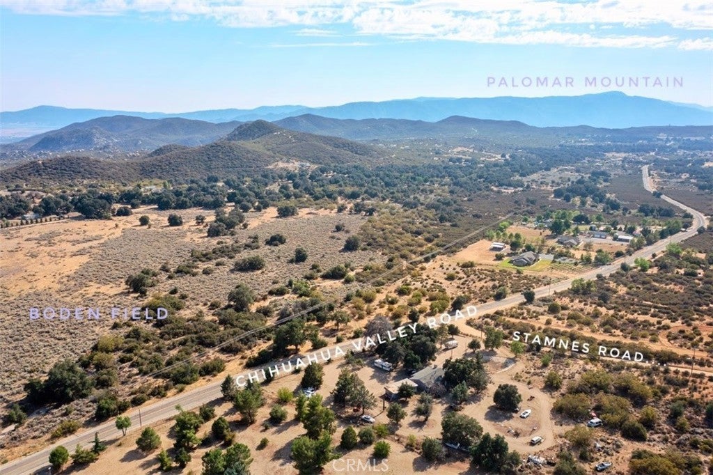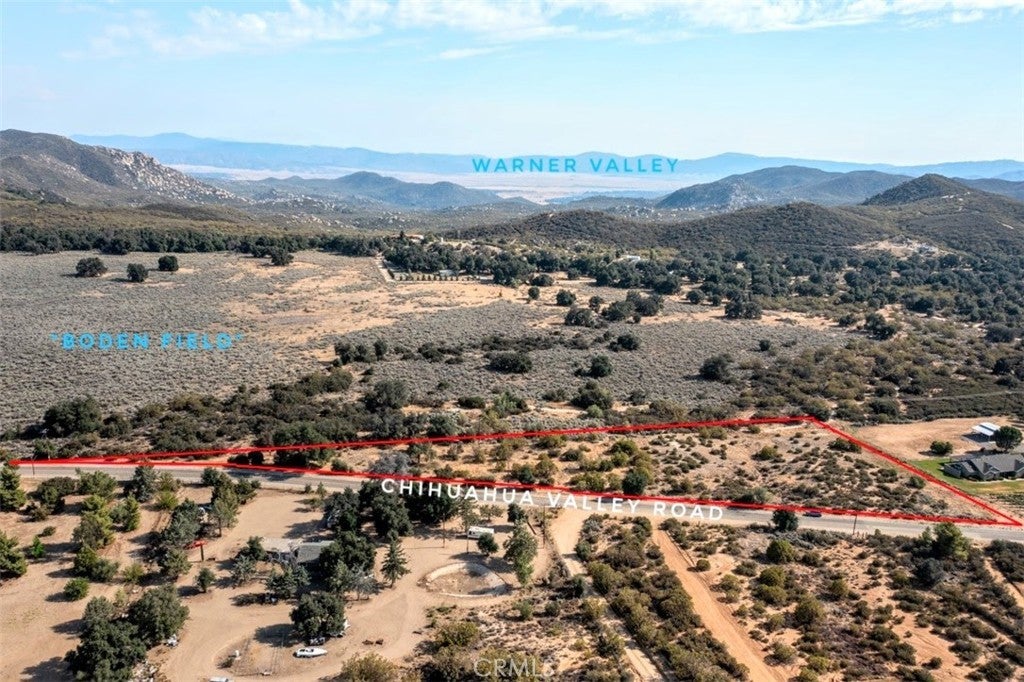 This lovely find consists of 3.03 acres, with paved Chihuahua Valley Road frontage, a capped (no equipment) water well, stunning views, HIGHLY usable space. The parcel backs up to a large area of privately owned property, locally known as Boden Field. Chihuahua Valley is one of the most charming communities you can hope to find. A small hamlet within Warner Springs, San Diego County, Chihuahua Valley is above 4000 feet in elevation, with various agricultural and residential use zoning. Like a little desert on the mountain, Chihuahua Valley features old oak hollows, plains of meadow grasses and sage, boulders, creeks, an IDEAL water aquifer, and four seasons. Our area is bordered by Cleveland National Forest, Anza Borrego State Park, and Bureau of Land Management public domain lands. We have horsie people, gentlemen and professional farmers and gardeners, vineyards, riding and hiking trails, the Pacific Crest Trail, a Buddhist Meditation Center, a zoo or two, Dr. Bronner's AOGF "Rainforest," old and active mineral mines, a little backyard cantina culture, some hermits, some influencers, artists, dreamers, characters and stargazers. Stake your claim on this precious commodity. Land yourself some LAND. Seller financing available!