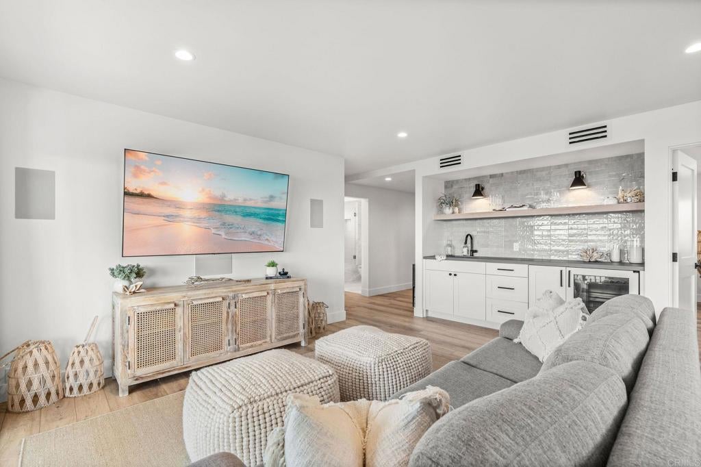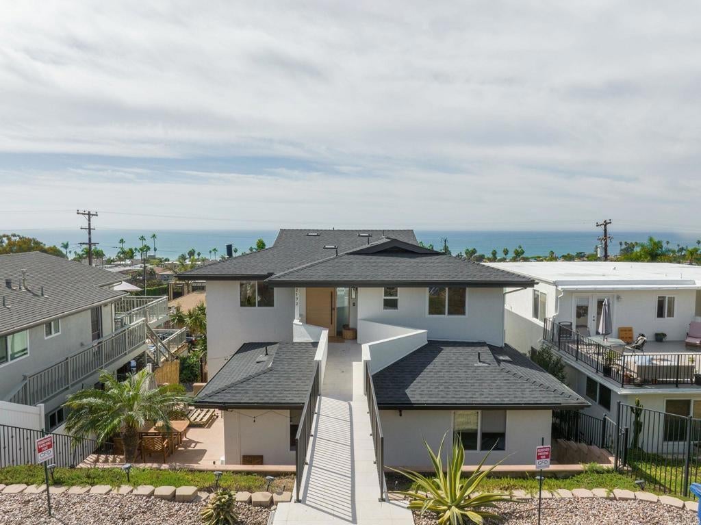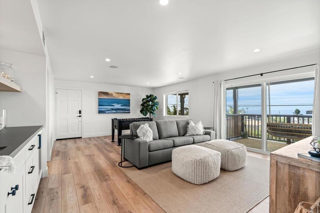 Spectacular Panoramic Ocean Views from this completely upgraded Cardiff by the Sea home. No expense has been spared with the luxury upgrades and decor this home has. This is a fully furnished seasonal rental with a 30 day minimum stay, but shorter stays are negotiable. Prices may vary based on the time of year. Current availability December 1, 2024 - January 31, 2025 & April 2 - July 6, 2025, (check for availability). Main floor features large open floorplan. All newly renovated and upgraded kitchen, living room, dining area which open up to your large balcony with some of the best ocean view you will find. Watch our beautiful San Diego Sunsets every night while enjoying a glass of wine, or have your morning coffee while listening to waves. You will also find the Master Suite on the main floor, also with the same spectacular ocean views. The next floor downstairs you will find two more bedroom, each with their own full bathrooms, and another great family room and your own balcony with balcony swing. Home comes equipped with a fully stocked kitchen for the home chef, plenty of towels and extra linens. Outdoor shower for when you are coming back from the beach. Sonos surround sound system, Wi-Fi, Smart TV's. Some of the other features include walk in pantry, coffee maker, Keurig, toaster oven, barbecue grill, wine fridge. This home has it all. Access to one garage parking spot and two driveway spots, or street parking. Will entertain a discount for stays between 2-4 months. There is a small one bedroom unit below the home with that is occupied by a single tenant. No common areas, as they have their own entrances.