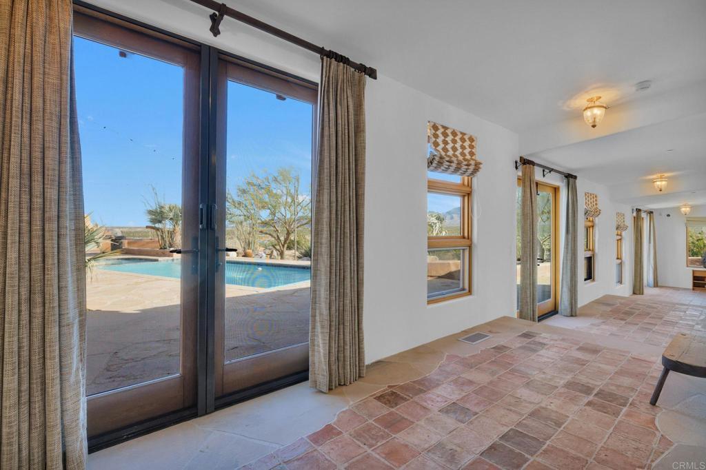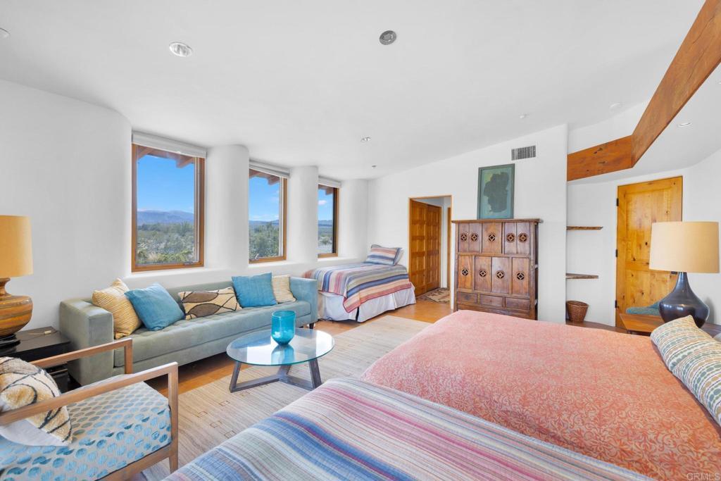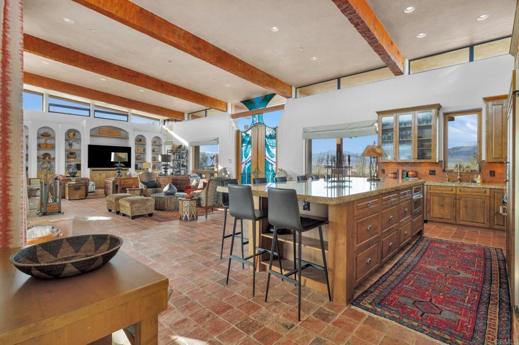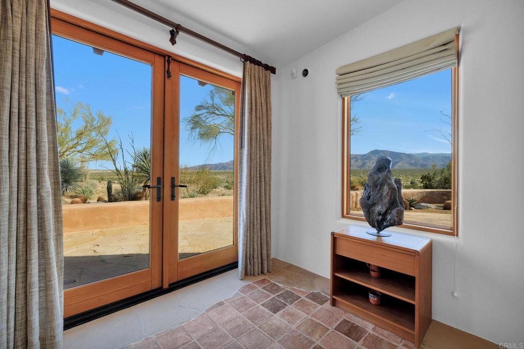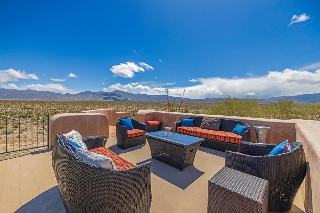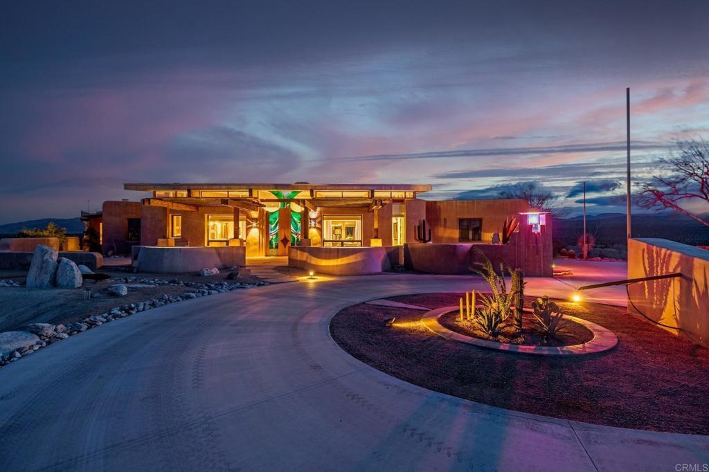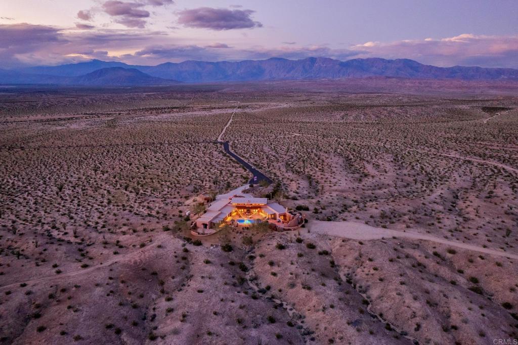 California Stars Ranch (CSR) in the Borrego Springs desert encompasses an expansive +/- 1,300 acres adjoining State Park lands at multiple points that extend to the unencumbered views past the horizon. The vast expanses of your private terrain that varies dramatically from deep lush washes, to rolling hills and dramatic cliffs to wide open fields filled with desert vegetation offers exploration of the wide open desert spaces for equestrian use, four wheeling, and off road vehicles. CSR has 4 wells, 2 of which are capped and provide substantial high-quality water. The estate adjoins the private gated Borrego Air Ranch, offering the luxury of an FAA approved private runway. A dedicated taxiway of +/- 4,000 feet when needed and facilitates seamless transportation of your aircraft from the Borrego Air Ranch runway to the private hangar on the property. Nestled amidst the vast landscape is an exquisite residence, a testament to architectural innovation and natural harmony. The main dwelling, crafted in 2006 by the visionary James Hubbell and the esteemed Drew Hubbell Architects, spans 4,768 square feet. This masterpiece boasts five bedrooms with five en-suite baths, plus two half baths, its walls are two feet thick, constructed with straw-bale infill provide substantial insulation from the outside temperatures and showcase a commitment to sustainable living. A striking feature of the property is the +/- 5,000 square foot airplane hangar, accompanied by a 1,560 square foot guest house comprising an open kitchen/living/dining area and one bedroom and one bath. The heart of this home lies in its well-appointed kitchen, equipped with stainless steel appliances, granite countertops, an oversized dining island, and a convenient walk-in pantry. The great room is adorned with built-in features, a large fireplace, and stained-glass front doors, creating an inviting and aesthetically pleasing space. The primary bedroom is a sanctuary, featuring a fireplace, an adjoining bath, separate office, and a very spacious walk-in closet. Four en-suite guest bedrooms provide comfort and privacy for visiting guests. Outdoor living on the large stone deck is embraced with a trellis and overhang, hosting an al fresco dining area, a large fireplace, a pool, and a spa. Ascend the staircase to discover an observation deck, offering panoramic views of the surrounding beauty and spectacular night skies (Borrego Springs is the world’s second IDA International Dark Sky community). Beneath the surface lies a subterranean garage/game room, with epoxy flooring, capable of housing up to 12 cars. This versatile space extends beyond mere parking, providing an ideal area for a workout and entertainment zone. The property's commitment to sustainability is underscored by a solar system array generating 70MW/year, providing energy for both homes and a well. For added resilience, a whole house propane generator is in place, ensuring uninterrupted power for the main residence. California Stars Ranch stands as a testament to meticulous design, blending luxury with eco-conscious living, creating a haven where modern comfort meets the serenity of nature. Parcels included in sale: 201-180-63-00, 201-180-53-00, 201-180-33-00, 201-180-27-00, 201-180-28-00, 201-191-49-00, 201-180-58-00, 201-180-64-00, 201-180-51-00, 201-180-38-00, 201-180-46-00, 201-180-29-01/201-180-29-02, 201-180-62-00, 201-150-09-00/201-150-10-00, 201-150-23-00, 201-220-04-00.