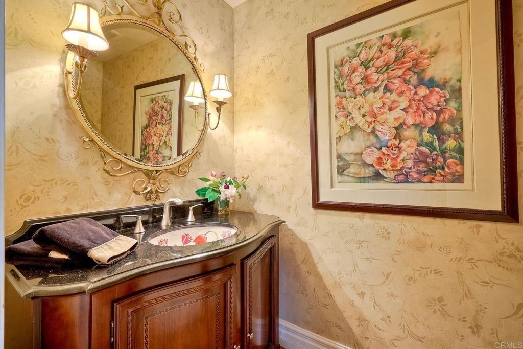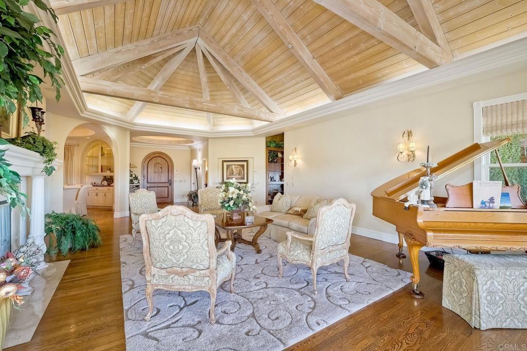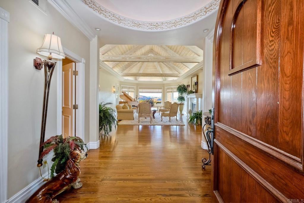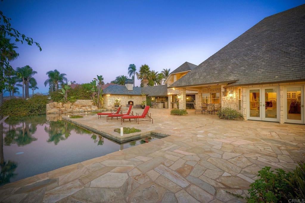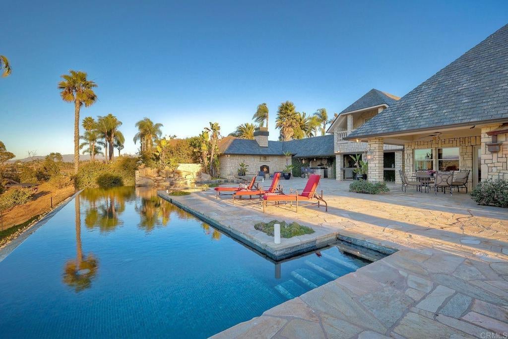 REDUCED & NOW PRICED TO SELL!!! Best value & price per square foot in Lake Vista Estates & Bonsall! Amazing opportunity to own this beautifully designed luxurious custom built estate offering the finest in resort style living! Highly desirable gated community in beautiful Bonsall! Bonsall schools. Gentle ocean breezes & spectacular sunset views await you from your very own private 2.5 acre parklike setting! Superior construction, slate roof, copper rain gutters & chimneys, extensive use of natural stone, wood & high quality craftsmanship. Grand Porto Cochere entry & circular driveway with parking for 10+ vehicles. Lush mature landscape + a variety of fruit & flowering trees for enjoyment. Expansive indoor & outdoor entertaining spaces for large family gatherings & holidays. Open floorplan. Views from every window! Vaulted, open beam, recessed, coiffured & dome ceilings-this exquisite home has it all! Stunning library with wainscot, custom shelving/cabinetry & grand corner fireplace. 5 fireplaces. 7 bathrooms. Chef's kitchen with spacious island & bar seating. Primary bedroom ensuite features a 2 sided fireplace, room sized closet/dressing room, wet bar, laundry room, 2 verandas + private stairway/loft for office/gym. 3 bedroom ensuites are located on the west wing. A separate private stairway on the east wing offers an optional 4th bedroom with full bath & walk-in closet. Perfect for multi-generational family, guests, game room or staff. Vanishing edge salt water 60'x12' lap pool adjoins deep water pool with diving rock. Outdoor fireplace, kitchen, wet bar, veranda & pool bathroom with shower. Paid solar. Security system. This is an exceptional home with an an abundance of upgrades. Detailed list of home features is available. Stunning glass dining table with 12 upholstered chairs conveys to buyers. Seller may carry a note for qualified buyer with substantial down payment.