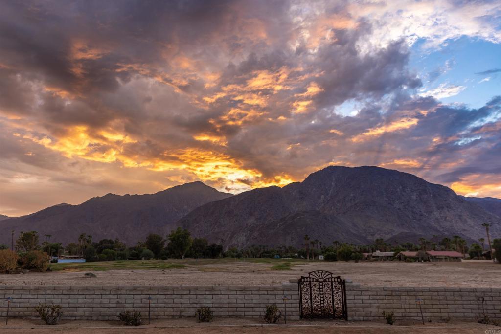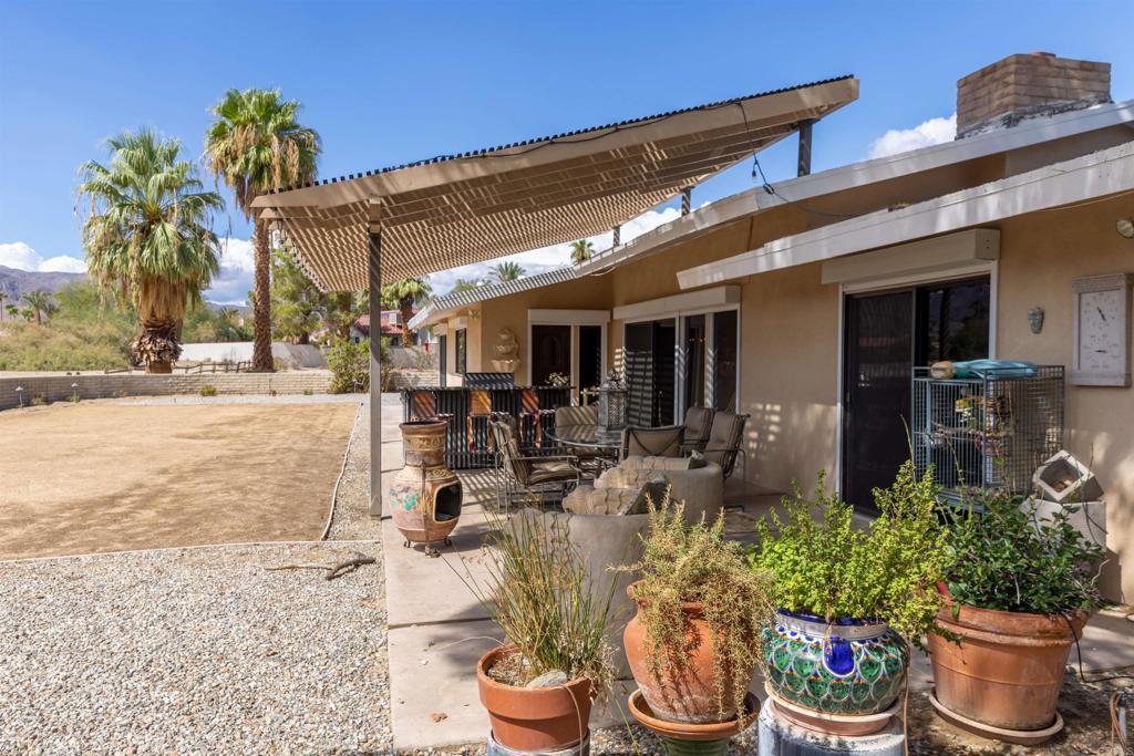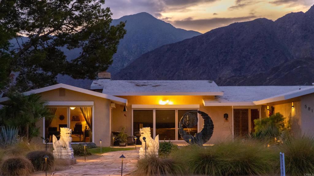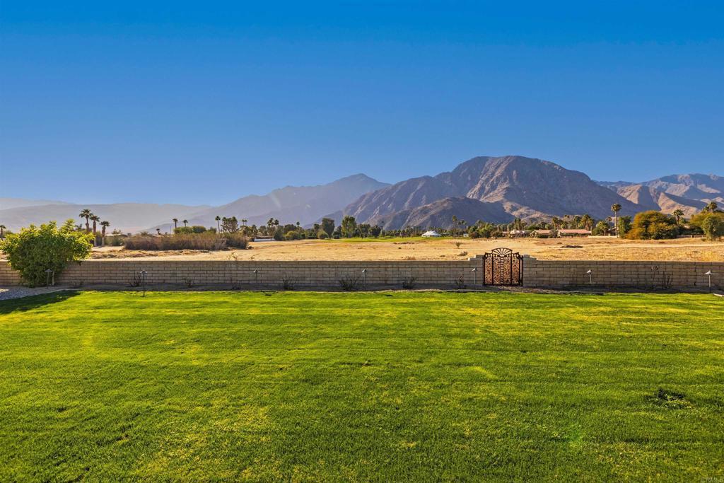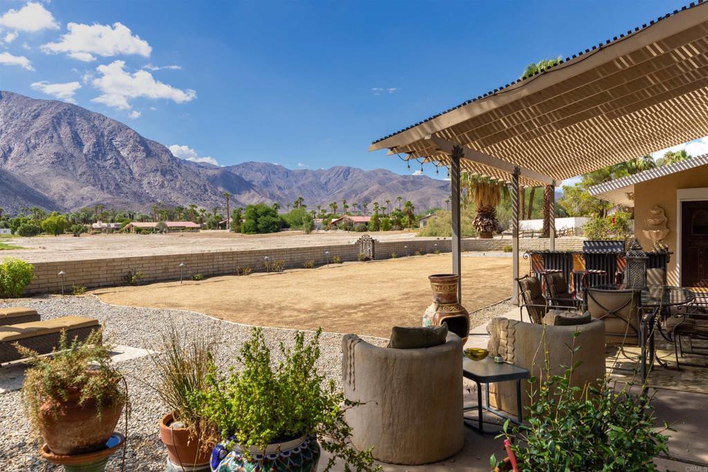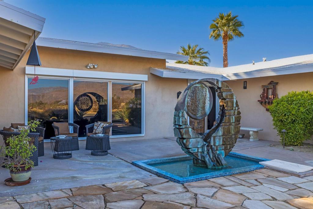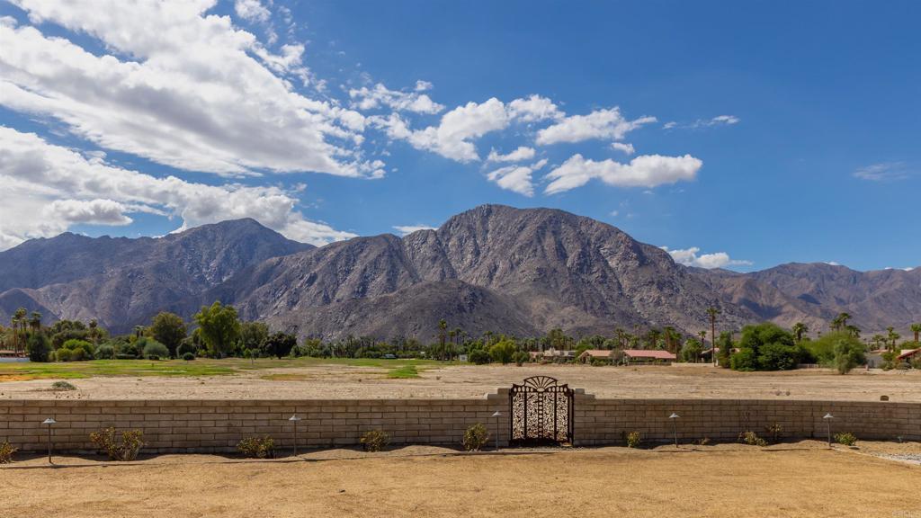Lovely Moroccan inspired home located in the De Anza Golf Estates. Landscaping, fountain, BBQ and gates all custom designed by renowned metal sculptor John Richen. Granite counter tops, newer appliances, new AC, metal security shutters on all windows. Stunning views from both front and back of the desert, golf course and surrounding mountains. Featuring 3 bedrooms, 2 bathrooms with master suite on the other end of the house for privacy. Includes neighboring lot for a total of 0.82 acre giving plenty of room for a pool, guest house, RV parking, etc.