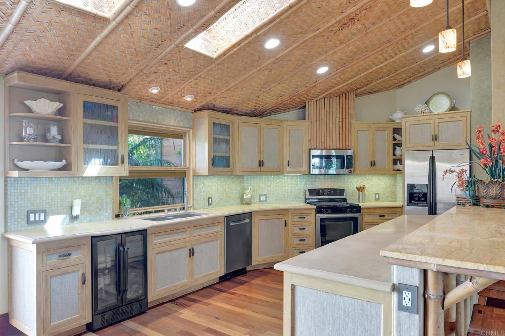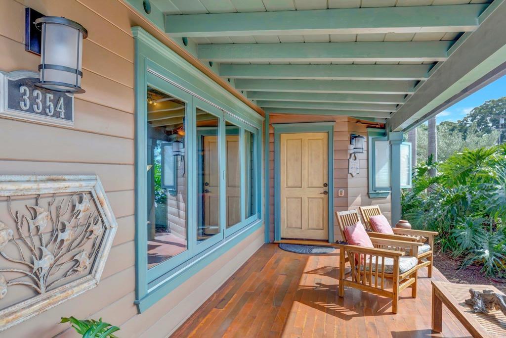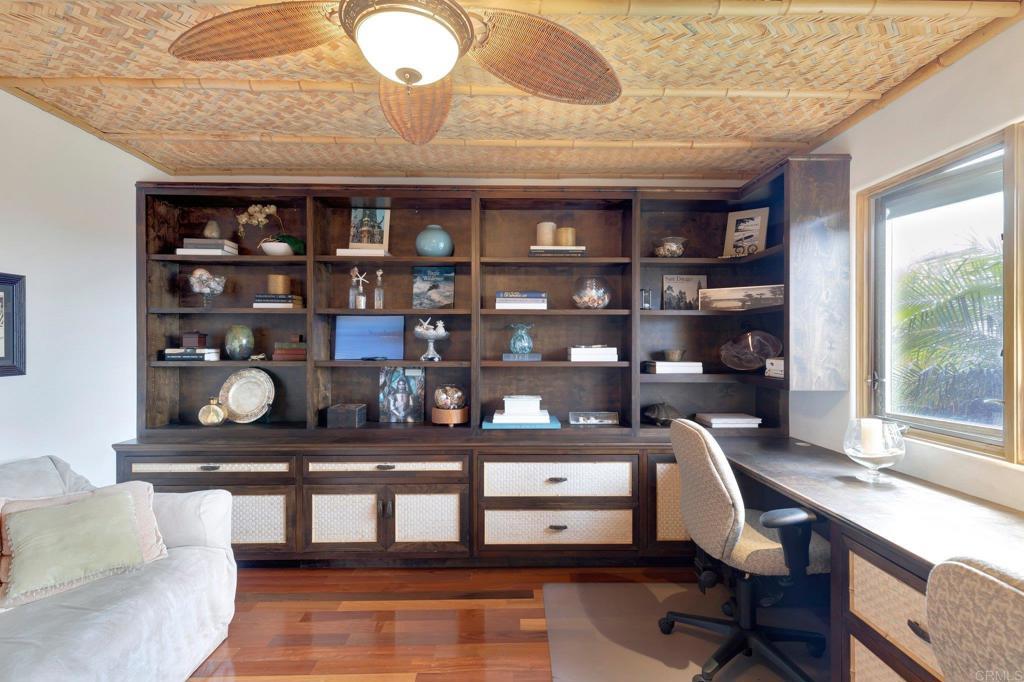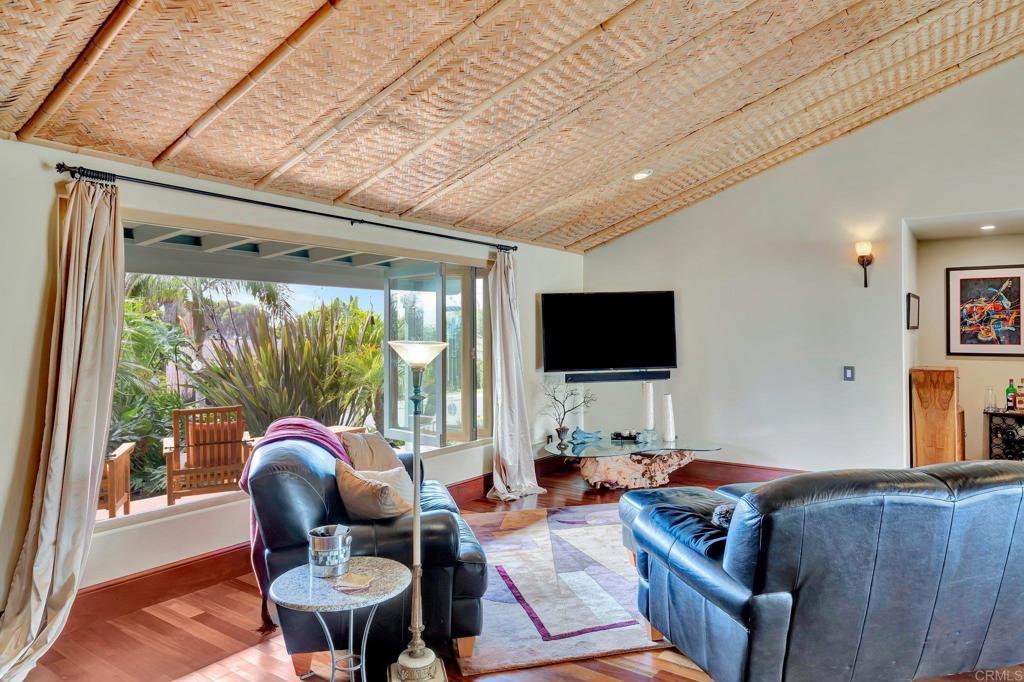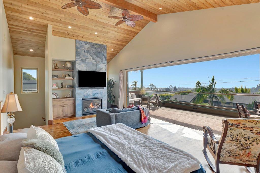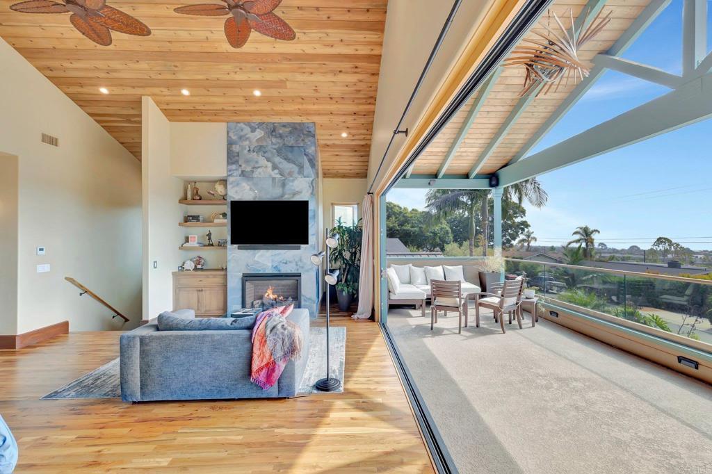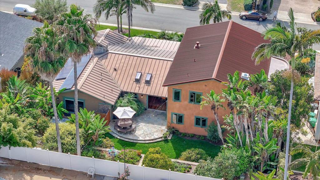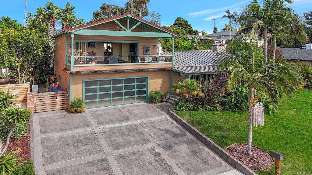 Nestled atop a hill overlooking Olde Carlsbad in the coveted neighborhood of Seacrest Estates, this custom-built masterpiece offers breathtaking PANORAMIC OCEAN views and resides in a tranquil no-through-traffic neighborhood. With 4 bedrooms and 3 baths plus an outdoor shower, the home features unique elegant design throughout. Walking through the door is like walking into a vacation on an island paradise, except, it is home. ----For peace of mind and lower-cost insurance, the home has been rated at the lowest possible risk of fire and flood. See attachment. ----The two-story exterior features ground level and stunning second floor covered porches, New England-style wood siding and trim, a standing seam copper-colored metal roof, artistic exterior lighting, and a broad custom-finished driveway big enough to accommodate several guests. The expansive backyard, with fruiting trees (avocado, orange, lemon, banana, and peach), a top-of-the-line Hot Springs spa, beautiful stone patios, and two Sonos outdoor speaker systems creates a secluded backyard entertainment zone. Situated on a 12,000 square foot lot, well over a quarter acre, there's ample space for gardening, a playground, or potential additions like a pool or ADU. A fully owned SOLAR PV system delivers significant energy offset to power the home. The attached 2.5 car garage has epoxy flooring and a translucent frosted glass garage door catering to needs for parking and workshops. ----Enter the home though the inviting ground level porch and you will find a first floor showcasing 3 bedrooms and 2 baths, one is a suite with bath ensuite. The living area has an antique beamed cathedral-ceiling with an open-plan kitchen/great room adorned with reclaimed tropical hardwood flooring made from 19th century Indonesian railroad ties, venetian plaster finishes, custom ceiling fans, and wood triple-pane Pella windows and sliding door with built-in mini-blinds. Two large La Cantina glass folding doors open to seamlessly merge indoor and outdoor living spaces making entertaining a dream. The spacious crafts room features elongated workspaces with wood and stone counters, ample storage, utility sink and a generous laundry area. An adjacent storage room includes built-in shelving and a cedar closet. A wide, brightly illuminated stairway leads to the second floor. ----The second story provides a generous master bedroom, bathroom, and dressing room suite. A 20-foot long La Cantina door opens the master room onto a covered 380 sq. ft. porch with glass wall and railings that bring stunning sunsets and a 180-degree ocean view to your bedside. Interior highlights continue with tongue-in-groove plank cathedral ceilings, solid oak flooring, and 8-inch Brazilian cherry baseboards. Luxurious amenities abound, such as an oversized walk-in rain shower with accessories and a 135 sq. ft. wardrobe room complete with custom built-in dressers, shelving, and racking. Additional features include Solatube daylighting, custom lighting fixtures, custom built-ins including a wet bar with beverage center. A stunning floor to ceiling fireplace with beautiful large format tile that warms the room on the occasional chilly night and makes reading and TV time extra cozy. Designed with foresight, the home is pre-wired and framed for a future interior elevator to go from the main level to the second floor. ---While secluded and quiet, this home is an easy walking distance to the nearby award-winning middle and high school, and minutes’ drive to beaches and the Carlsbad Village. This one-of-a-kind home epitomizes the Carlsbad coastal lifestyle of relaxation, luxury, and convenience. ---Schedule your private showing today to experience all this exceptional property has to offer.