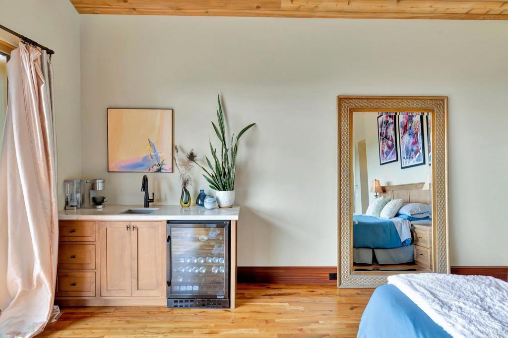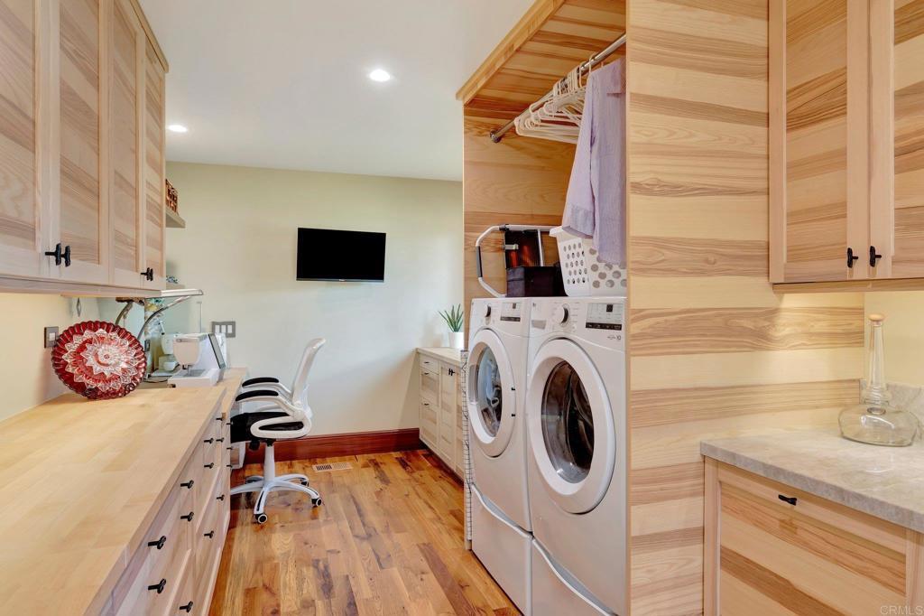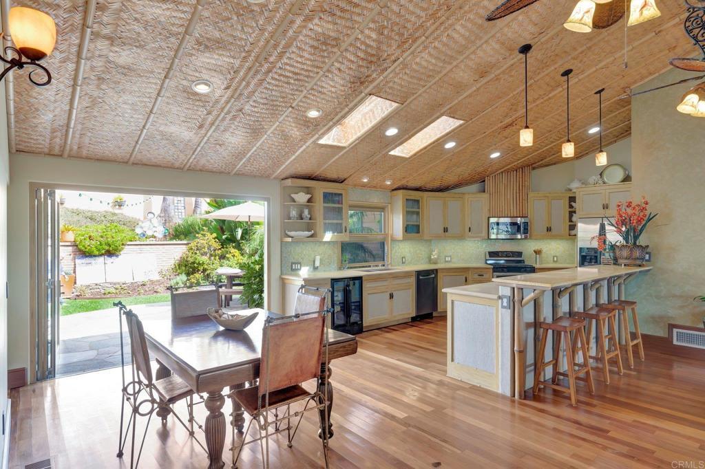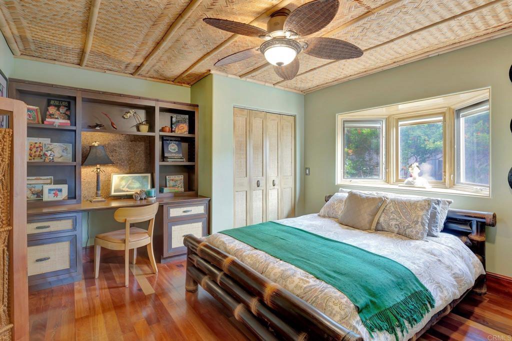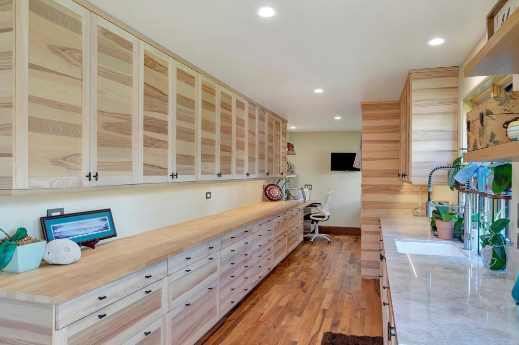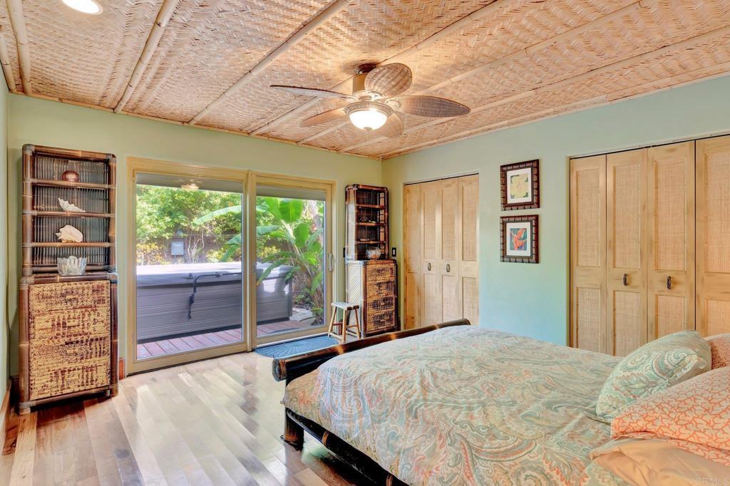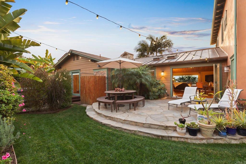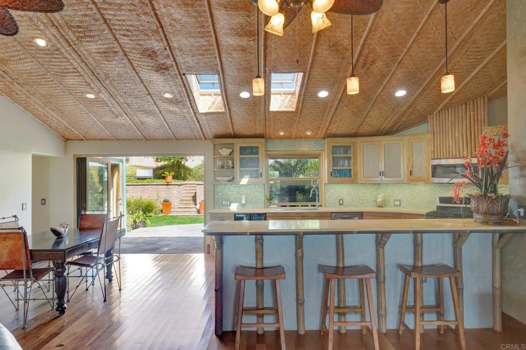 Nestled atop a hill overlooking Olde Carlsbad in the coveted neighborhood of Seacrest Estates, this custom-built masterpiece offers breathtaking PANORAMIC OCEAN views and resides in a tranquil no-through-traffic neighborhood. With 4 bedrooms and 3 baths plus an outdoor shower, the home features unique elegant design throughout. Walking through the door is like walking into a vacation on an island paradise, except, it is home. ----For peace of mind and lower-cost insurance, the home has been rated at the lowest possible risk of fire and flood. See attachment. ----The two-story exterior features ground level and stunning second floor covered porches, New England-style wood siding and trim, a standing seam copper-colored metal roof, artistic exterior lighting, and a broad custom-finished driveway big enough to accommodate several guests. The expansive backyard, with fruiting trees (avocado, orange, lemon, banana, and peach), a top-of-the-line Hot Springs spa, beautiful stone patios, and two Sonos outdoor speaker systems creates a secluded backyard entertainment zone. Situated on a 12,000 square foot lot, well over a quarter acre, there's ample space for gardening, a playground, or potential additions like a pool or ADU. A fully owned SOLAR PV system delivers significant energy offset to power the home. The attached 2.5 car garage has epoxy flooring and a translucent frosted glass garage door catering to needs for parking and workshops. ----Enter the home though the inviting ground level porch and you will find a first floor showcasing 3 bedrooms and 2 baths, one is a suite with bath ensuite. The living area has an antique beamed cathedral-ceiling with an open-plan kitchen/great room adorned with reclaimed tropical hardwood flooring made from 19th century Indonesian railroad ties, venetian plaster finishes, custom ceiling fans, and wood triple-pane Pella windows and sliding door with built-in mini-blinds. Two large La Cantina glass folding doors open to seamlessly merge indoor and outdoor living spaces making entertaining a dream. The spacious crafts room features elongated workspaces with wood and stone counters, ample storage, utility sink and a generous laundry area. An adjacent storage room includes built-in shelving and a cedar closet. A wide, brightly illuminated stairway leads to the second floor. ----The second story provides a generous master bedroom, bathroom, and dressing room suite. A 20-foot long La Cantina door opens the master room onto a covered 380 sq. ft. porch with glass wall and railings that bring stunning sunsets and a 180-degree ocean view to your bedside. Interior highlights continue with tongue-in-groove plank cathedral ceilings, solid oak flooring, and 8-inch Brazilian cherry baseboards. Luxurious amenities abound, such as an oversized walk-in rain shower with accessories and a 135 sq. ft. wardrobe room complete with custom built-in dressers, shelving, and racking. Additional features include Solatube daylighting, custom lighting fixtures, custom built-ins including a wet bar with beverage center. A stunning floor to ceiling fireplace with beautiful large format tile that warms the room on the occasional chilly night and makes reading and TV time extra cozy. Designed with foresight, the home is pre-wired and framed for a future interior elevator to go from the main level to the second floor. ---While secluded and quiet, this home is an easy walking distance to the nearby award-winning middle and high school, and minutes’ drive to beaches and the Carlsbad Village. This one-of-a-kind home epitomizes the Carlsbad coastal lifestyle of relaxation, luxury, and convenience. ---Schedule your private showing today to experience all this exceptional property has to offer.