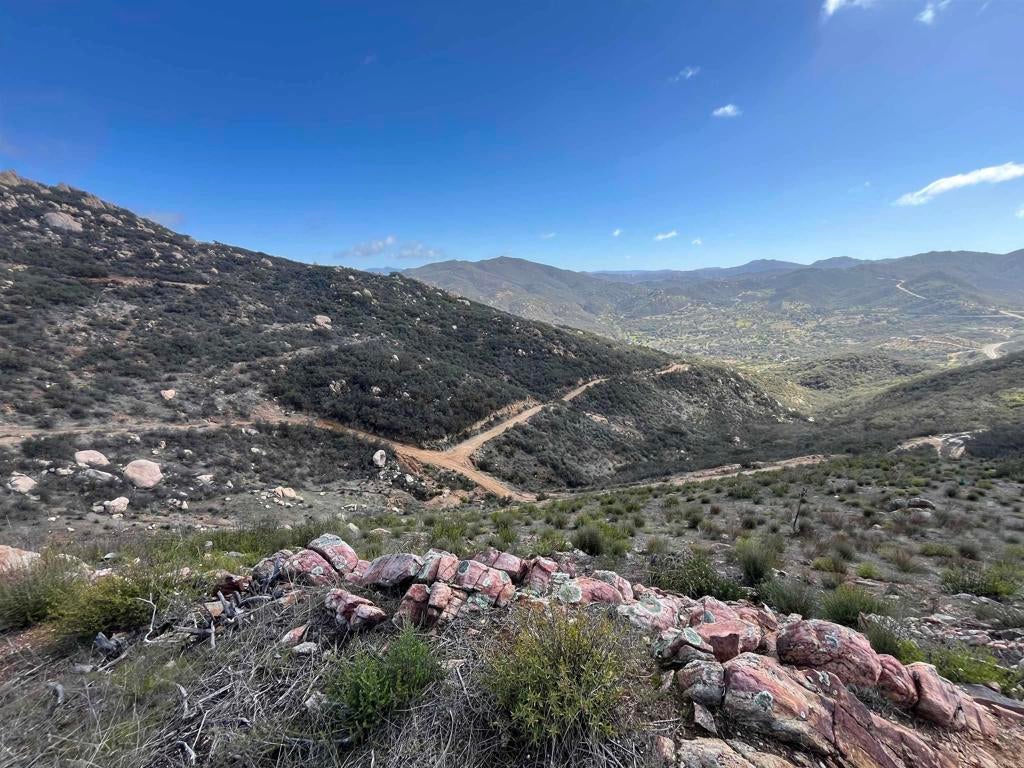 Build your dream home at the top of this 5 acre lot with beautiful panoramic views over City of Jamul. Bushes and shrubs cleaned out. Grading done for well placement. Blueprint for 5000 sq ft house with pool and jacuzzi available. Property fence posts installed. Percolation test done.