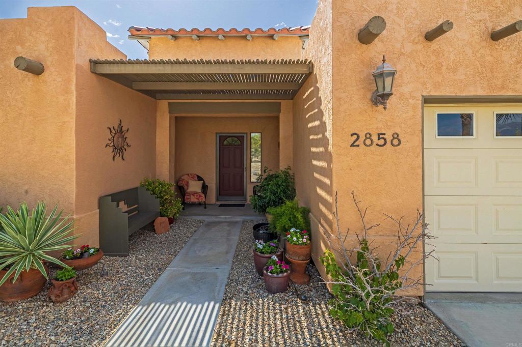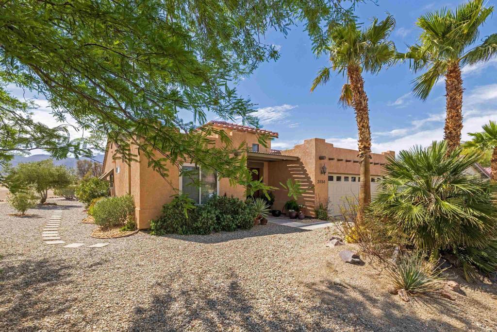 Welcome to your beautiful Borrego Springs oasis! This charming home features a lovely patio where you can relax and take in breathtaking views of Indian Head Mountain. Inside, you'll find a newly updated kitchen with sleek stainless steel appliances and a remodeled guest bathroom, offering both style and comfort. The well designed layout places the bedrooms on opposite ends of the home, providing ideal privacy for residents and guests alike. A leased solar system keeps energy costs down. Located within walking distance to the Borrego Springs Resort, where pool and fitness room memberships are available for added convenience and leisure. Additionally, the resort has a restaurant and lounge boasting stunning views. Don't miss this opportunity to enjoy serene desert living with modern comforts!
