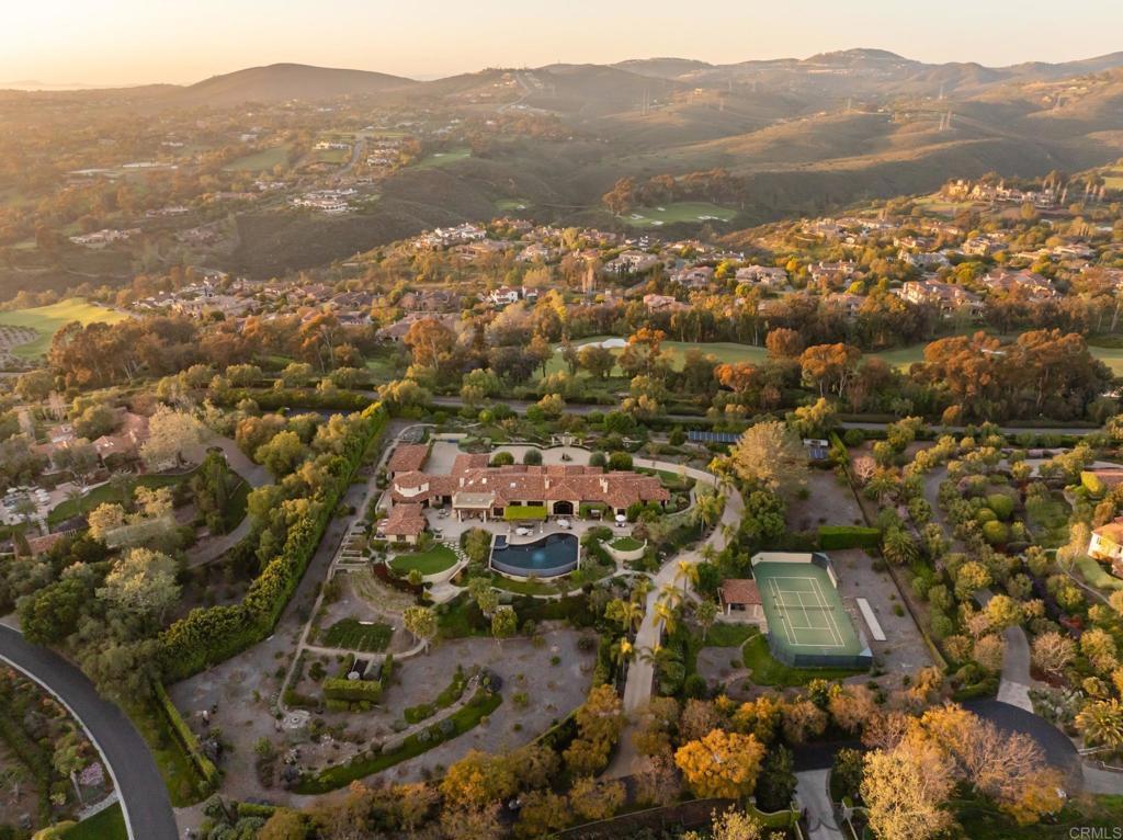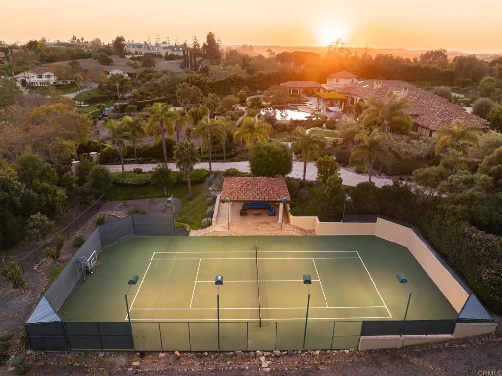 Now offered at an exceptional value, this 4.1-acre private, endless view estate within the prestigious 24-hour guard-gated community of Rancho Del Lago represents the pinnacle of resort-style living. Thoughtfully reimagined and fully renovated, the single-level, 11,893-square-foot residence was designed to bring together timeless architectural elegance with modern functionality—ideal for families of all sizes seeking both connection, privacy and sustainable living. From the moment you arrive, a grand gated entry opens to manicured grounds where lifestyle amenities unfold at every turn. A lighted tennis court, bocce ball, and an oversized infinity-edge pool with spa and pavilion provide endless opportunities for recreation and relaxation. Multiple covered terraces, outdoor fireplaces, and a full outdoor kitchen create elegant venues for gatherings, from casual afternoons to grand-scale entertaining. Mature colorful landscape frame the never-ending view while bountiful, organic fruit and vegetable gardens provide the residents with seasonal meal-time delights. Inside, the residence was planned with flexibility in mind. The main living, dining and family rooms are complemented by an arcade/game room and gym, and a detached, sophisticated guest house with living room, bedroom kitchenette and bath, allowing for simultaneous activities with effortless flow. The chef’s kitchen, anchored by slab Brazilian quartzite countertops and custom cabinetry, seamlessly connects to the family room and outdoor living spaces. Seven en-suite bedrooms, including a whimsical “castle suite” for younger family members, are designed to provide privacy and comfort across generations. Two executive offices cater to work-from-home needs, while a secondary kitchen and private entrance create a dedicated wing for staff, extended family, or multigenerational living. Two oversized garages accommodate up to eight vehicles, enhancing both function and convenience for collectors or families with multiple drivers. 6565 Calle Reina is more than a residence—it is a legacy estate designed for modern family living. Every space balances elegance and livability, creating a sanctuary where memories are made and lifestyles are elevated.