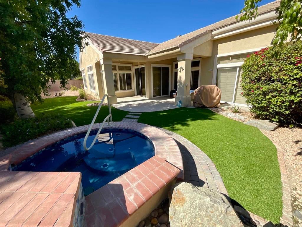 Rarely available Pave Model and with 4 full bedrooms. $3,800/mo (June-September), $6,000/mo (October-May). 30 day min lease required, would prefer longer. This is the perfect way to live the amazing fun filled and luxurious Sun City lifestyle in a fully furnished and fully equipped home with everything needed at a reasonable price. Just bring your toothbrush and clothes! Welcome to beautiful, 78907 Fountain Hills Dr, inside amenity rich Sun City in Palm Desert. This fully furnished home is located in a vibrant senior community, and the much sought after ''Pave'' model, includes 4 bedrooms and 2 full baths. Enter through double door entry to an open floor plan with formal dining and living room featuring 14 ft., ceilings. Generous use of tile throughout. Congregate in the spacious family room that is conveniently adjacent to the kitchen. The owner's suite is generous in size and has a glass slider to the south facing rear yard with mountain views. Located in the back yard you will find a heated, in ground spa. The guest wing of the home features 3 bedrooms serviced by a full bath/shower. Another plus is the 2 car garage and a golf cart garage. Everything about this home just feels right. The amenities list of the community is extensive and includes 3 club houses, 2 restaurants, coffee bar, martini bar, 5 pools, 2-18 hole golf courses, 2 driving ranges/practice areas, 2 pro shops, 18 hole putting course, baseball field, dock fishing, 8 bocce ball lanes, 10 tennis courts, 4 pickleball courts, a billiards room, dance studio, long term RV parking, walking paths throughout, art studios for painting, stain glass, pottery, sewing, knitting and quilting. Not to mention the 80+ clubs that are also accessible.