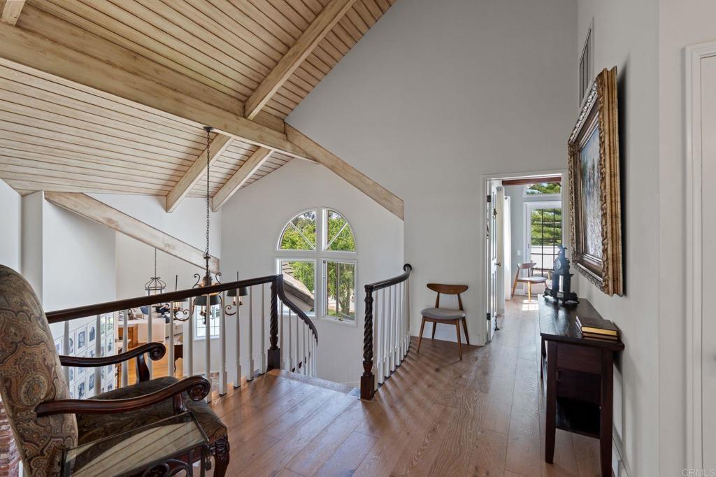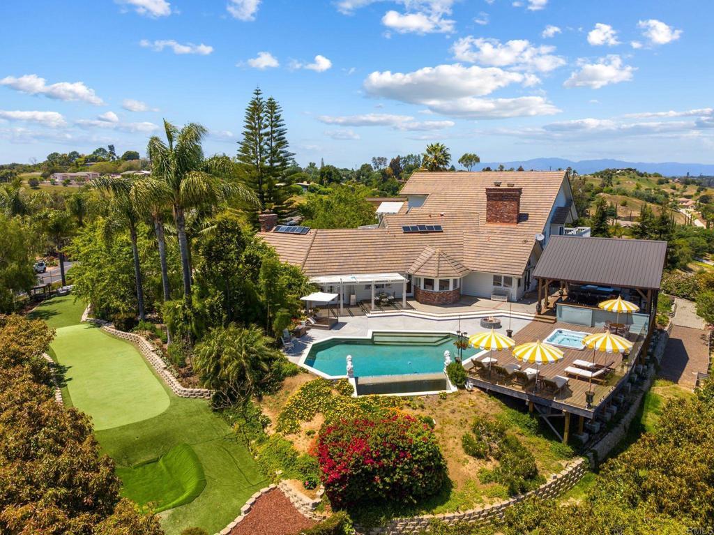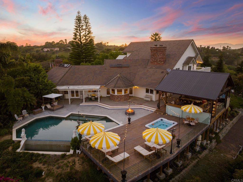 SELLERS ARE MOTIVATED! Welcome to a one-of-a-kind luxury estate in the heart of peaceful Fallbrook, California, where sophistication meets natural beauty on 2.78 lush, view-filled acres. This fully remodeled 5-bedroom, 6-bathroom home spans over 5,100 square feet and was designed by renowned architect Brion Jeannette to maximize light, flow, and panoramic vistas from every room. From the moment you enter, you’ll be captivated by high vaulted ceilings, European French oak floors, and a seamless open floor plan that connects indoor elegance with outdoor splendor. The chef’s kitchen is a true centerpiece, featuring a massive island, dual Dacor ovens, a walk-in pantry, and brand-new refrigerator and freezer—perfectly positioned to enjoy views of the infinity-edge pool, spa, and distant mountains while staying connected to the adjacent family room and outdoor entertaining areas. With two home offices—one with a private deck and inspiring views—this property is as functional as it is stunning. The primary suite is a luxurious retreat with its own deck, library with fireplace, walk-in and separate shoe closets, and spa-like bath. The entertainer’s dream backyard features a fully equipped outdoor kitchen with soapstone counters, three refrigerators, a teppanyaki grill, custom oak bar with commercial ice maker, kegerator, and more. There’s also a putting green, lighted tennis court, and a versatile 1,800-square-foot detached garage with its own bathroom and septic system—offering incredible potential to convert it into an ADU, guest house, or creative space. An attached 3-car garage provides additional convenience, and the grounds are dotted with avocado and fruit trees, all nourished by a private well. With fully owned solar, no HOA, and thoughtful upgrades including resurfaced decks, remodeled bathrooms, and well-maintained fireplaces and roof, this estate is truly turn-key. From breathtaking sunrises to golden sunsets, this home offers a lifestyle you won’t find anywhere else—a rare blend of luxury, comfort, and self-sufficiency in a community where neighbors still wave and kids laugh in the streets.