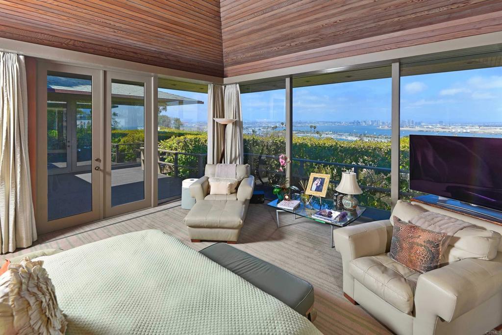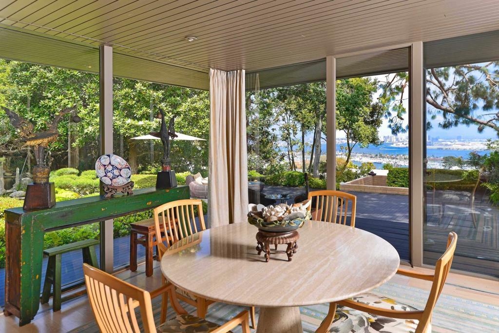 LANDMARK MID CENTURY MODERN ESTATE! Designed by Master Architect Russell Forester for visionary entrepreneur Robert Peterson, founder of Jack in the Box, this exceptional c. 1965 Mid-Century Modern estate is being offered for the first time in over 24 years. A quintessential example of Post and Beam architecture, the residence showcases Forester’s hallmark minimalism, clean lines, and seamless integration with the surrounding natural environment. Nearly hidden from view in the coveted La Playa/Wooded Area of Point Loma, this exceedingly private 1.69-acre family compound includes four structures: the Main Residence, Guest House, Pool House, and Caretaker's House—all thoughtfully unified by tranquil water features, mature plantings, and masterful landscape design. At the heart of the estate lies the pièce de résistance: a breathtaking Koi pond with resident wildlife, a picture-perfect Japanese teahouse, and meandering garden pathways designed to inspire peace and reflection. Perched atop a private promontory, the property commands panoramic 180° views of the Bay, Ocean, and City Lights, offering a rare blend of serenity and proximity—minutes to the San Diego International Airport, world-class yacht clubs, fine dining, and cultural destinations. Amenities include: Pool, Spa, Gym, Sauna, Steam Shower, illuminated Tennis/Sport Court, Wine Cellar, 4-car Garage + off-street parking for 6 additional vehicles, and an Urban Farm with Greenhouse. Recognized at the National, State, and Local levels for its Architectural and Historical significance, the property enjoys substantial Property Tax Savings via the Mills Act. Per the Sellers, this Tax Savings+Owned Solar pays the Estates' maintenance expenses. Timeless in design and rare in provenance, this is a once-in-a-generation opportunity to own a storied piece of San Diego History. More than a home, this is an Architectural Retreat, a Wellness Sanctuary, and one of San Diego’s most iconic Private Estates.