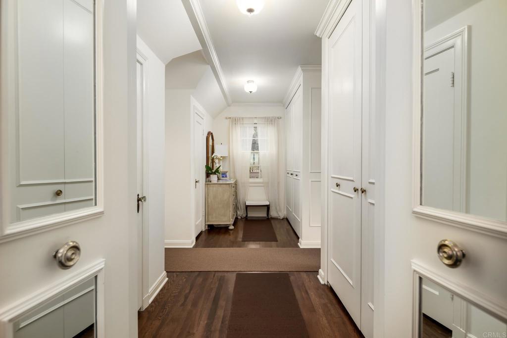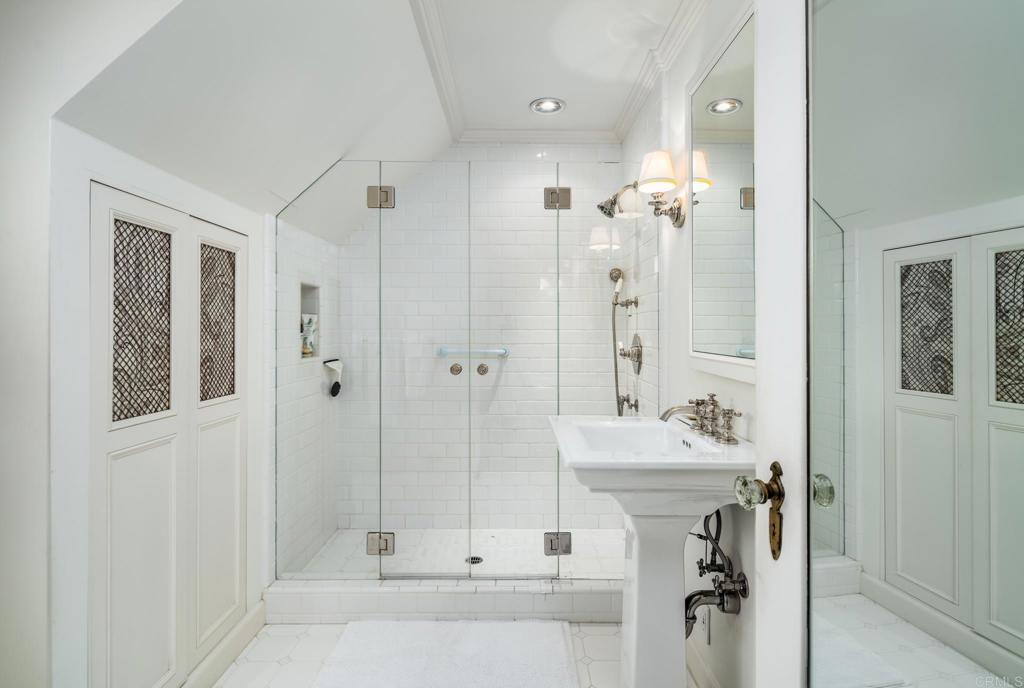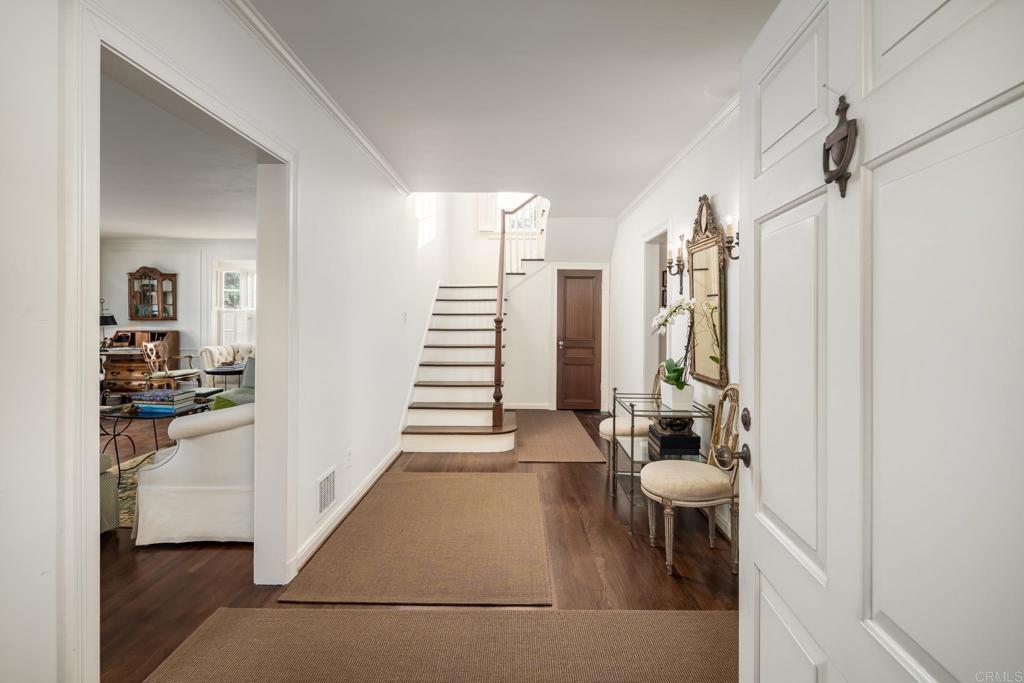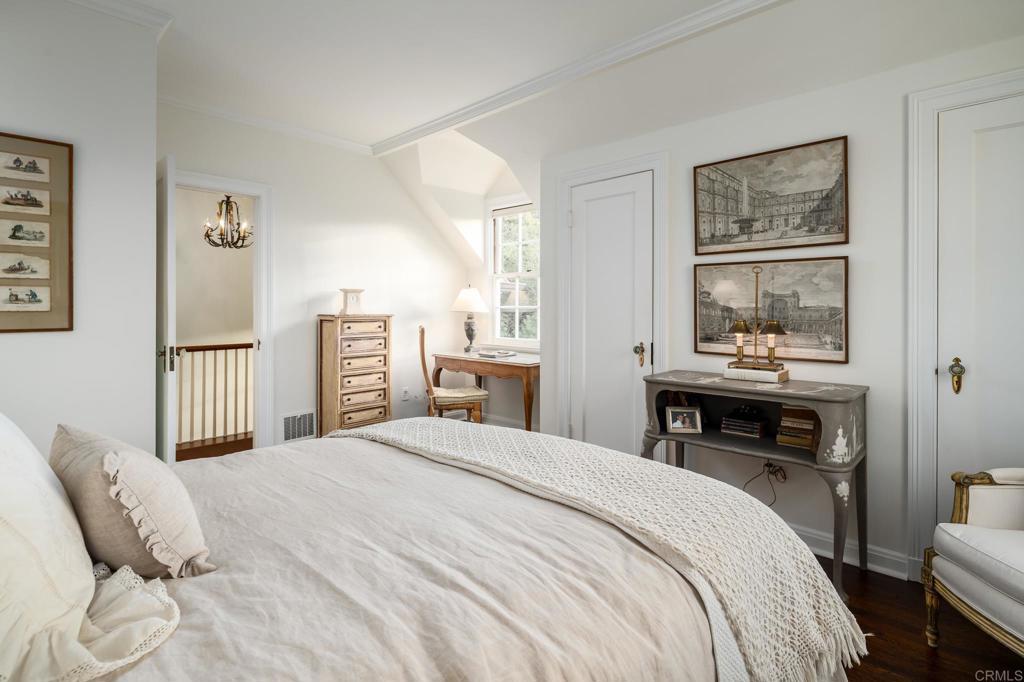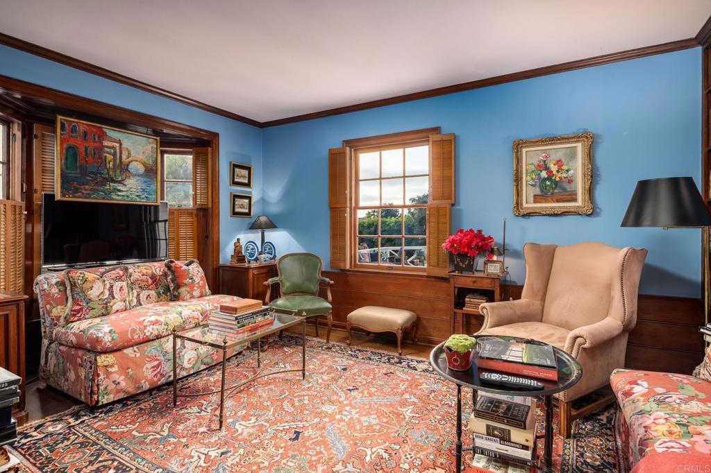 For the first time in over 30 years, the iconic Lowry McClanahan/Thomas Shepherd Residence is available — an architectural jewel and historically designated landmark (HRB No. 710), complete with a Mills Act agreement for significant property tax savings. Tucked away on a quiet street in the esteemed La Jolla Hills and designed in 1936 by Master Architect, Thomas Shepherd, this Colonial Revival estate has been lovingly restored, offering timeless elegance across a generous .33-acre lot framed by lush privacy hedges and manicured gardens. Every detail of this home speaks to its pedigree — from the original oak flooring, intricate millwork, and built-ins, to the natural light that fills each carefully curated space. The main level offers a versatile layout ideal for modern living and entertaining. The grand living room features classic wainscoting, an original masonry fireplace, and French doors that open to a serene loggia with views of the expansive backyard. A charming formal dining room with bay window and corner built-ins flows into a beautifully updated chef’s kitchen and butler’s pantry, complete with creamy white cabinetry, Corian countertops, paneled appliances, and a walnut-topped center island. Step onto the elevated entertaining deck or enjoy alfresco dining surrounded by roses below. Upstairs, three spacious bedrooms and two full baths include a private primary suite with dual walk-in closets and a sun-drenched en-suite bath. A cozy den, powder room, and rare basement/utility space add to the home’s function and charm. 7716 Lookout Drive is more than just a residence — it’s a legacy. A rare offering to own a masterwork of La Jolla’s architectural heritage and create the next chapter in its storied history.