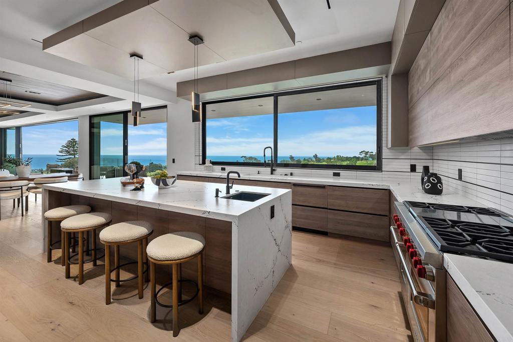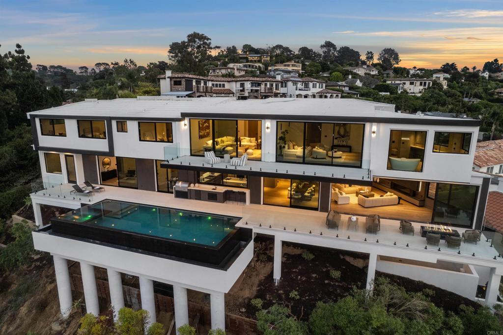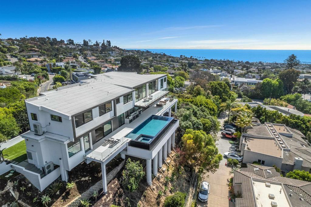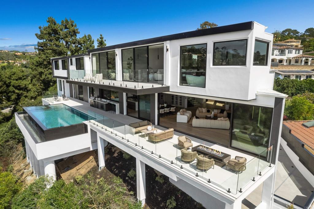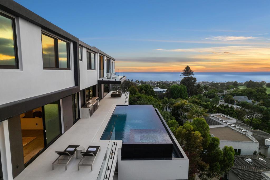 Elegantly situated in the prestigious Muirlands community, this brand-new contemporary masterpiece boasts some of the most breathtaking, sweeping views of the Pacific Ocean, golf course, and city skyline—truly among La Jolla’s most extraordinary vistas. Step inside to discover seven spacious bedrooms, each thoughtfully designed with its own en suite bath, including two luxurious primary suites, one on each floor, offering ultimate privacy and comfort. Every detail has been meticulously curated to embody sophistication and ease, from the Wolf kitchen appliances and Sub-Zero refrigerator to the expansive walls of glass that frame stunning views and seamlessly blend indoor and outdoor living. Two laundry rooms, an elevator, and a 4+ car tandem garage ensure that convenience meets grandeur at every turn. Outside, entertain in style by gathering around the fire pit, firing up the built-in BBQ, or taking a refreshing dip in the gorgeous infinity-edge pool where the horizon feels within reach. A dedicated game room and guest suite add layers of versatility to this elegant home. More than a residence, this is a statement of modern luxury and tranquility; a true sanctuary nestled in the heart of La Jolla. A rare and remarkable opportunity to own one of the most exceptional properties in the coveted Muirlands community awaits.