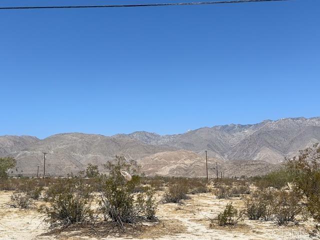 This parcel offers beautiful mountain views and is only a few minutes away from downtown Borrego Springs. Located in a quiet neighborhood with unobstructed views to the west. Situated in northeast San Diego County, and surrounded by the Anza-Borrego Desert State Park, Borrego Springs is celebrated for its spring wildflower bloom, small town charm, and designation as California's first International Dark Sky Community.