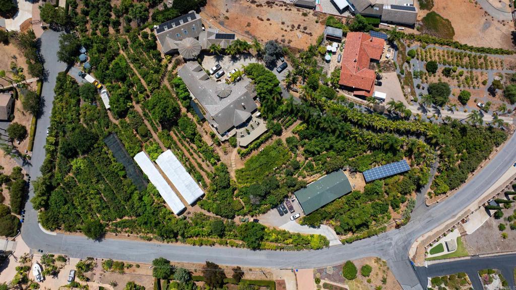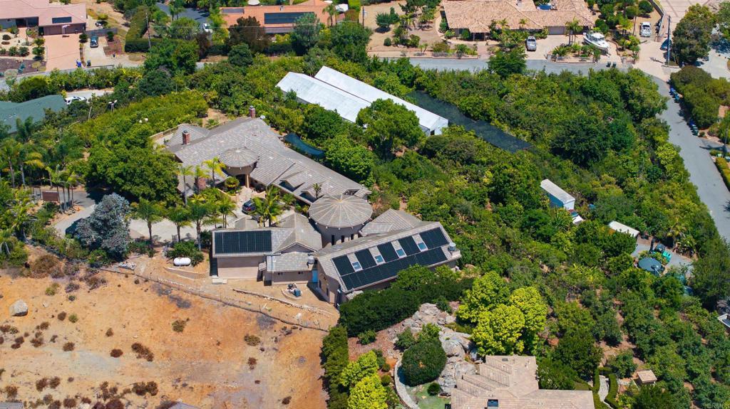 Amazing one of a kind property! This exclusive, serene self-sustaining tropical paradise awaits you! Perfect for a secluded family compound/retreat and those who appreciate the beauty and value of this rare find. Welcome to this spectacular 7,783sf single level estate plus 1,945sf 5BR/3.5BA guest house high in the hills of Vista on 3.88 private acres w/panoramic ocean and mountain views! Mature palm trees line the 400ft long driveway leading to the lush tropical setting of pure oasis. The resort-style indoor salt-water pool is housed in a 2,300sf building w/soaring ceilings, skylights and large windows w/sweeping views! The pool house has a dual heat and air system, air changes every 7 minutes, a dressing room, full bath and is climate controlled via solar panels. A dramatic rotunda connects the pool house to the main home. The flow of the home is ideal for large gatherings and entertaining. Features include beautiful wood inlaid floors, open beamed ceilings, a large chef's kitchen w/granite, maple counters, Travertine floors and a 1,000sf play room or convert to another master suite or guest quarters. Large multi-level 6,000+sf decks overlook the lighted sand volleyball court. The true beauty of this property is the amazing grounds like no other boasting more than 600 mature subtropical fruit trees from around the world. Also included is your own 1,500ft well and 60 panel electric solar system. The property has an extensive water irrigation system including three 5,000 gal reserve water tanks with full delivery system. Separate meters for the house, guest house and well. Currently an exotic fruit nursery, the 10,000+ potted fruit trees are available for purchase if desired. The year round warm and temperate Vista climate compliments this fantastic estate!