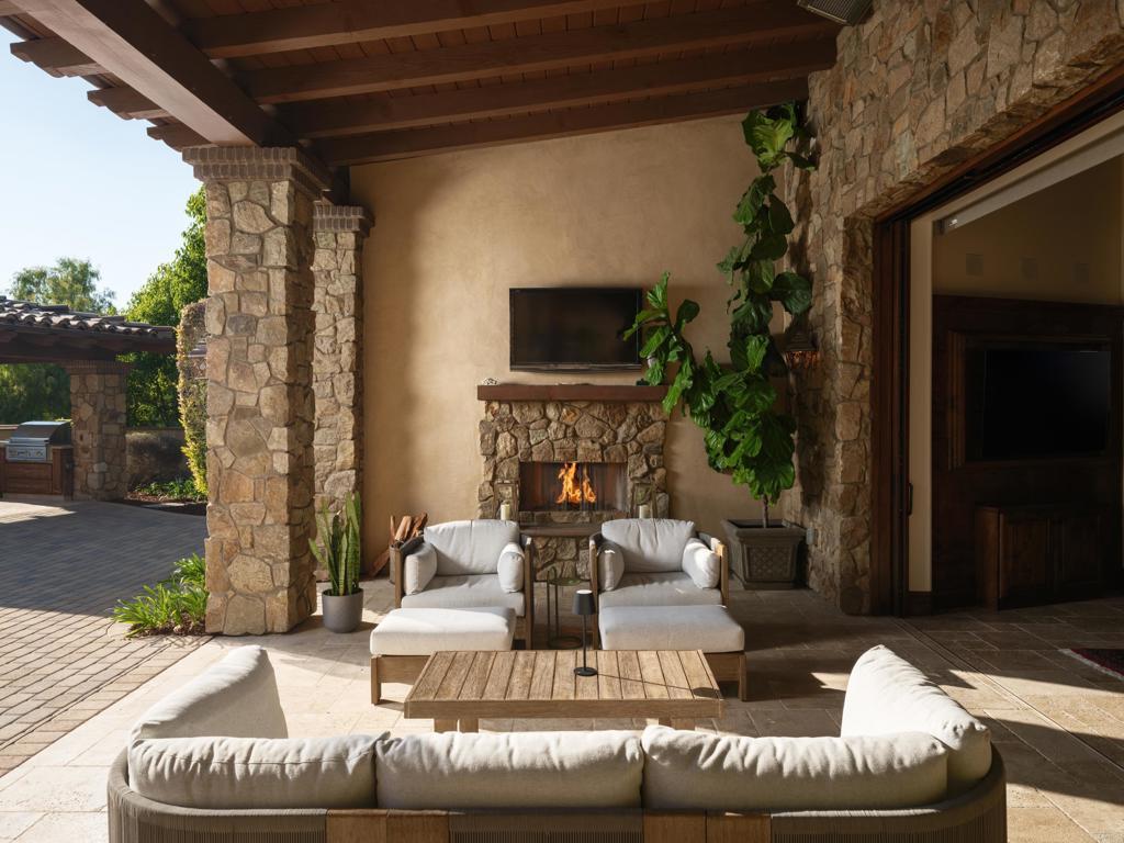Welcome to this exceptional Henry Penner-built estate, privately gated within the prestigious Santaluz community. Thoughtfully designed for luxurious living and grand entertaining, this four-bedroom plus office residence features a seamless open floor plan and refined, timeless finishes throughout. The expansive great room flows to a built-in bar, perfect for gatherings, while the formal dining room offers an elegant space for special occasions. Movie nights transform into a cinematic experience in your private eight-seat theatre. The heart of the home is the gourmet kitchen, complete with a Wolf oven and range, Subzero refrigerator, Bosch dishwasher, and an adjacent prep kitchen-ideal for effortless hosting and everyday functionality. The main level offers two spacious bedrooms, while upstairs includes two additional bedrooms and a generous entertaining room with its own mini kitchen. Retreat to the main-level primary suite featuring a spa-like bath, outdoor spa on a private patio, and a walk-in closet with its own mini washer and dryer for added convenience. Additional highlights include a dedicated office, four-car garage, owned solar for the home and pool, and a private gated entry offering exclusivity and security. This is a rare opportunity to own a timeless Santaluz masterpiece, designed for both intimate family living and grand-scale entertaining.