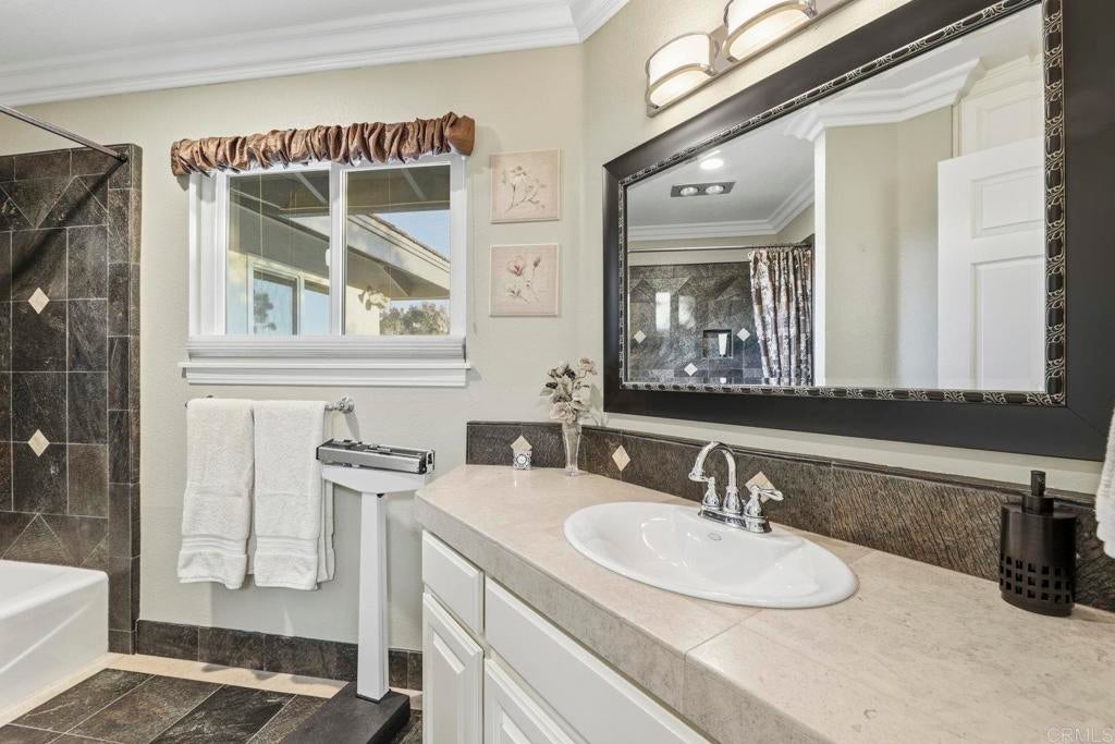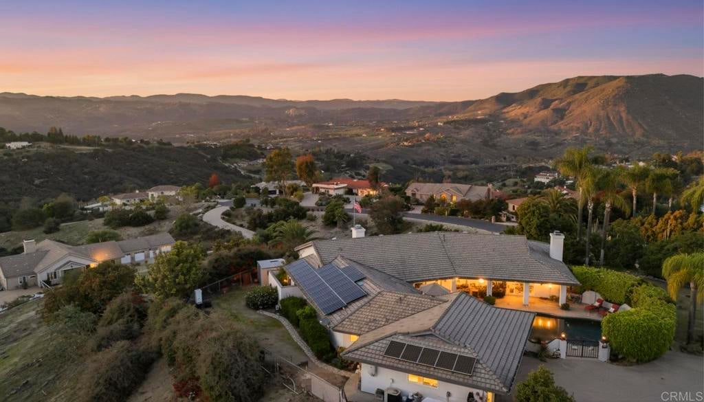Gorgeous traditional single story home on almost 3 acres with breathtaking mountainous views in the prestigious neighborhood of RidgeCrest Estates in the charming town of Fallbrook! This amazing pride of ownership property boasts luxurious features with it's exquisite crown molding and chandeliers, elegant formal living and dining room along with 2 fireplaces, wood beam ceilings, wood floors and beautiful natural light. Beautiful open kitchen with oversized refrigerator, granite counter tops, and large walk-in pantry. Grand master suite with stunning views that has access to your outdoor covered patio, luxurious master bathroom featuring jacuzzi tub and walk in shower. Two nice size guest bedrooms, one has an ensuite bathroom which adds to privacy for guests. With paid Solar, water softener, newer a/c unit, newer water heater, 3 car garage equipped with built-in cabinets and dog washing station, rv parking and plenty of room to build an ADU, this entertainers paradise exudes natures tranquility with it's variety of citrus, figs, and macadamia trees and private tranquil pool and spa. Watch the sunrise from the front courtyard listening to beautiful chirping birds or take in the sunset off the back patio! Great accessibility to town, wineries, shopping and conveniently located to the I-15FWY. Don't miss an opportunity to own such a delightful piece of paradise! Check out video tour at https://tours.curb360.com/mls/224333581