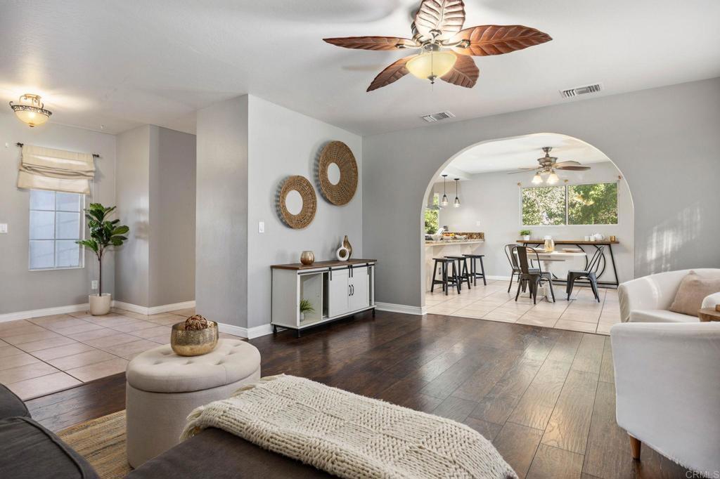Charming Single-Level Home on cul-de-sac in San Diego Country Estates! Welcome to this nicely updated 3 bedroom, 2 bathroom home nestled on a quiet cul-de-sac in the heart of San Diego Country Estates. Two sets of solar panels for energy sustainability. Featuring an upgraded kitchen with granite countertops, stainless steel appliances, recessed lighting, dual pane windows, ceiling fans and more! The open living room boasts a cozy stone fireplace, perfect for chilly evenings, and the spacious primary suite offers a walk-in closet, dual sinks, and direct access to the covered back patio. In addition there is an easement trail behind your home if you would like to access for riding horses or taking a stroll. With no carpet—only laminate wood and tile flooring throughout—this home is as practical as it is stylish. Enjoy outdoor living on the expansive half-acre lot that backs to scenic trails, ideal for kids, pets, and entertaining. Additional highlights include an attached 2-car garage, flagstone walkway, and solar for energy efficiency. Refrigerator, washer, and dryer included (without warranty). Don’t miss the chance to own this delightful home in the desirable SDCE community! Discover the hidden gem of San Diego County! Nestled amidst the picturesque rolling hills of San Diego Country Estates (SDCE) in Ramona, known as 'The Valley of the Sun,' this area offers a lifestyle of tranquility and natural beauty. Embrace breathtaking mountain vistas that envelop the community. SDCE boasts an array of outdoor amenities tailored to enthusiasts, including a prestigious 18-hole golf course, over 55 miles of scenic horse and walking trails, and pristine tennis and pickleball courts. Dive into leisure at two sparkling community pools, one of which is Olympic-size, perfect for relaxation and recreation. For our four-legged friends, indulge in the expansive greenery of two dedicated dog parks. Plus, with two equestrian centers on-site, this community is a haven for horse lovers. Convenience meets comfort with nearby resources such as gourmet dining options, the esteemed San Vicente Resort Inn, and a fitness center. Pamper yourself at the full-service wellness spa, providing rejuvenation and relaxation just steps from your doorstep. Families will appreciate the educational excellence offered by two award-winning elementary schools within the community. Enjoy the perfect blend of serenity and sophistication in this unparalleled enclave within San Diego County. Welcome home to San Diego Country Estates!
