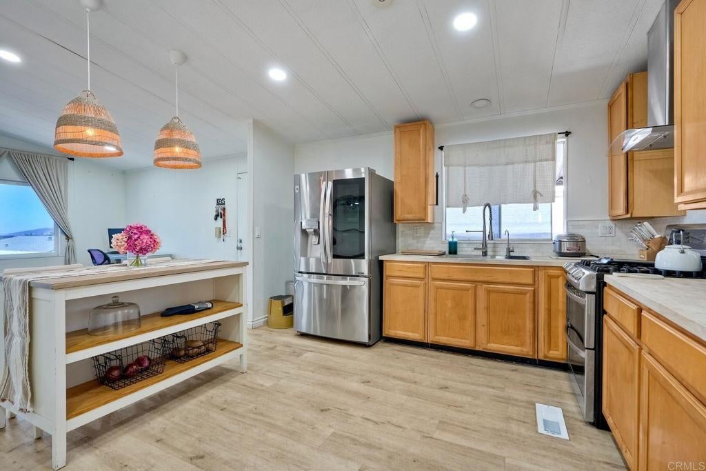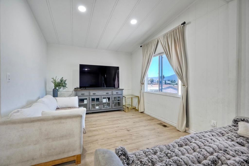 LAND OWNED PARK! This means no space rent!! Reduced to sell quickly at $540,000, submit an offer today before it’s gone! Welcome to Twin Oaks Valley Park — a Land-Owned, All-Ages Community with Breathtaking Views! Discover this beautifully updated 3-bedroom, 2-bath manufactured home (plus a bonus room!) perfectly set on a permanent foundation with a 433A permit—qualifying for conventional financing. Enjoy sweeping panoramic western views of the City of San Marcos and the glowing evening sunsets right from your living room! Freshly painted on the exterior for a modern, sleek look, this home features a remodeled kitchen with stainless steel appliances and overhead vent, updated bathrooms, laminate flooring throughout, and contemporary lighting fixtures that create a bright, inviting feel. The spacious open-concept living and dining areas are filled with natural light and perfectly framed views. The recently added third bedroom (no closet) provides flexible living space, while the private enclosed bonus room with its own entrance makes an ideal home office, art studio, or guest suite. Additional highlights include an indoor laundry room, two driveways with ample parking, and a quiet backyard retreat—the perfect place to unwind while soaking in the tranquil views. A storage shed is included for added convenience. Best of all, there’s no space rent—this is land-owned living! With low HOA dues of just $158/month, you’ll enjoy community amenities like a sparkling pool, relaxing spa, and beautifully maintained park grounds. The community even features solar panels that help lower residents’ electric bills, making this one of the most desirable and affordable parks in San Marcos. Located in the top-rated San Marcos School District, and just minutes from Cal State San Marcos, Palomar College, Sprinter Station, hospitals, shopping, dining, and major freeways (HWY 78, I-15, and I-5). Don’t miss your chance to own land, enjoy resort-style amenities, and take in stunning views every day—this is the home you’ve been waiting for!