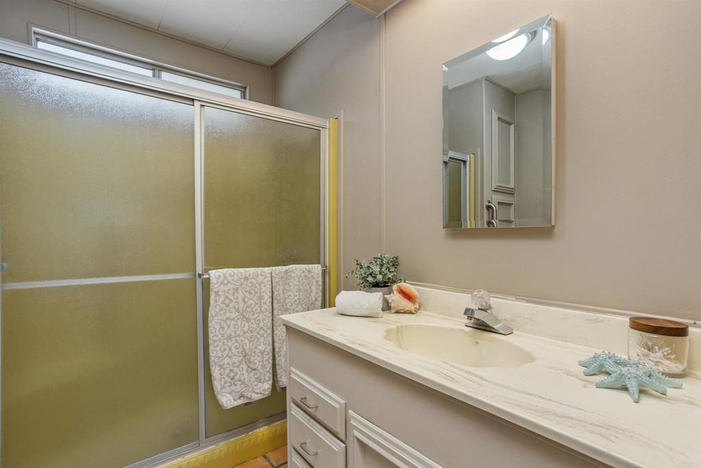 PRICE REDUCTION! Lovely and Spacious home. MOVE IN Ready. New Interior Carpet, Paint and Outdoor Patio carpet. Updated kitchen with soft-close maple cabinets. Central Air Conditioning, room for four cars under dual covered carports. Living and dining areas open up to bright windows with plenty of sunshine streaming through. Relax on the serene patio deck for morning coffee and ocean breezes from the west. Spacious bedrooms on a quiet street, extra closet space in the primary and laundry room. Built in workshop and extra shed for storage. Community Pool, Pickleball Courts, Gym, Spa and Rec Room with social activities throughout the year. Key-gated RV parking available for a fee. Conveniently located near shopping, Lake San Marcos, golf, boating, walking trails, schools, restaurants and freeways. Ample visitor parking. This Immaculate community with beautiful surroundings awaits you!
