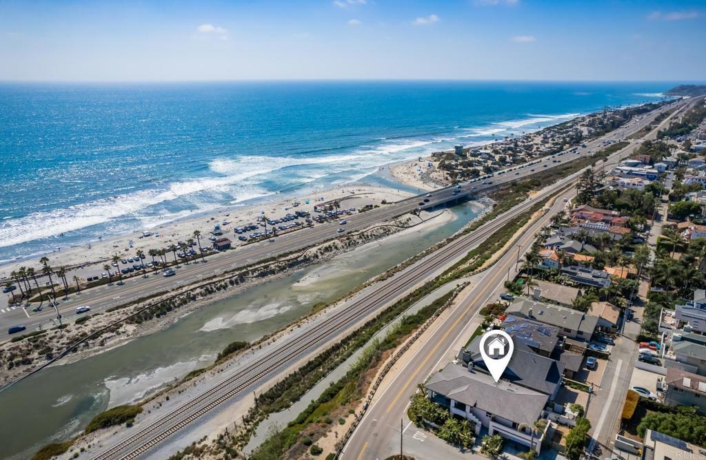 Welcome to 110 Kilkenny Drive, a rare opportunity to live FRONT ROW overlooking Cardiff State Beach and Cardiff Reef, one of the most iconic spots on the California coast. This expansive 4-bedroom, 3.5-bathroom coastal retreat offers 3,500 square feet of light-filled living space, blending panoramic ocean views with everyday comfort and style. Perched on one of the most coveted streets in Cardiff-by-the-Sea, the home captures unobstructed views from the upstairs living room, kitchen, dining area, and the downstairs primary suite. The upper level features a spacious, open-concept kitchen and living room designed for entertaining or relaxing while soaking in the view. Also on this floor are an en-suite guest bedroom, a bonus room perfect for a home office or media space, and a convenient powder bath. Downstairs, the primary suite opens to a quaint patio and includes a spa-like bath and walk-in closet. Two additional bedrooms and a full bath are located on the same level, along with a laundry room and direct access to the two-car garage. Enjoy ocean breezes from the wraparound deck, ideal for sunset dinners or morning coffee, as well as a small yard and outdoor shower, perfect for rinsing off after a surf session. Additional features include central air conditioning, extra driveway parking, and thoughtful storage throughout. Just across the street from the sand and surf, this home places you steps from the shoreline and minutes from world-famous breaks like Swami’s, Pipes, and Seaside Reef. Nature lovers will also appreciate the proximity to the San Elijo Lagoon Ecological Reserve and Nature Center, one of San Diego’s largest coastal wetlands. Explore scenic trails perfect for walking, running, birdwatching, photography, or painting—this 979-acre estuary is a peaceful and inspiring escape just moments from your door. Located within walking distance to Cardiff Seaside Market, popular cafés, award-winning restaurants, and top-rated local schools, this home offers a rare blend of beachside living, natural beauty, and village charm. Offered with a preferred one-year lease and the option to extend. Pets will be considered on a case-by-case basis. Available July 15, 2025.