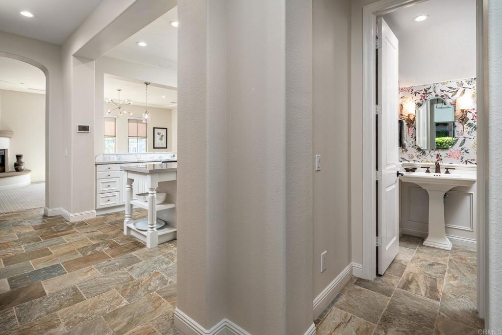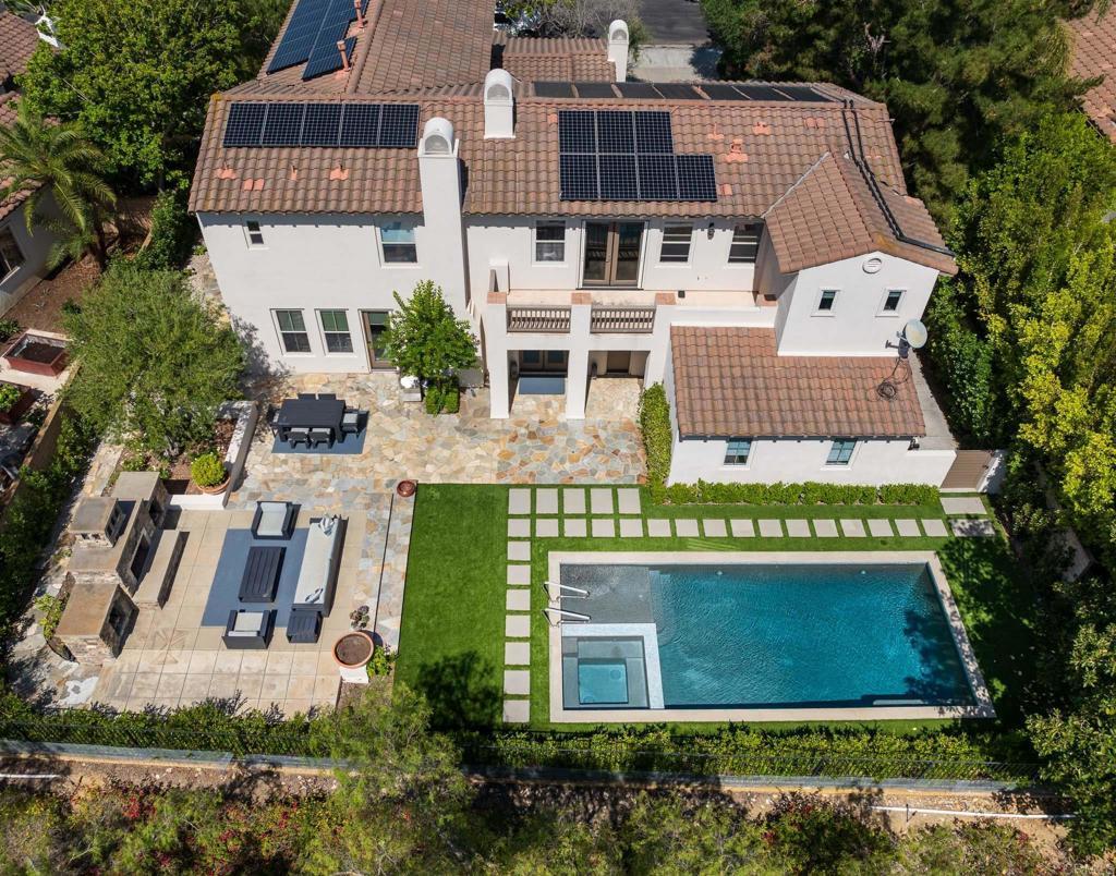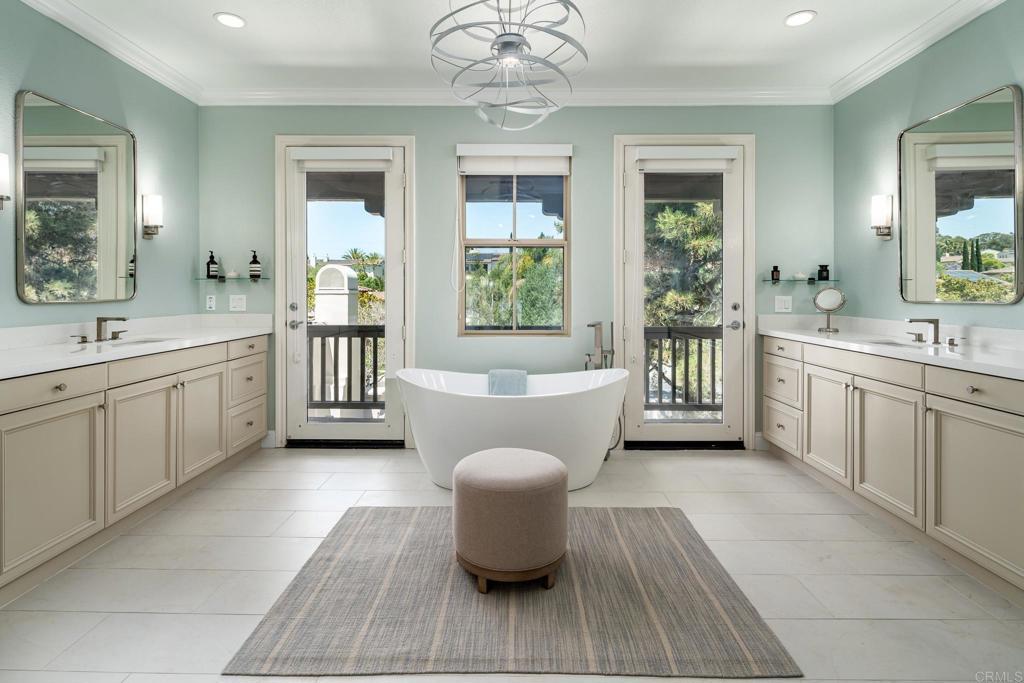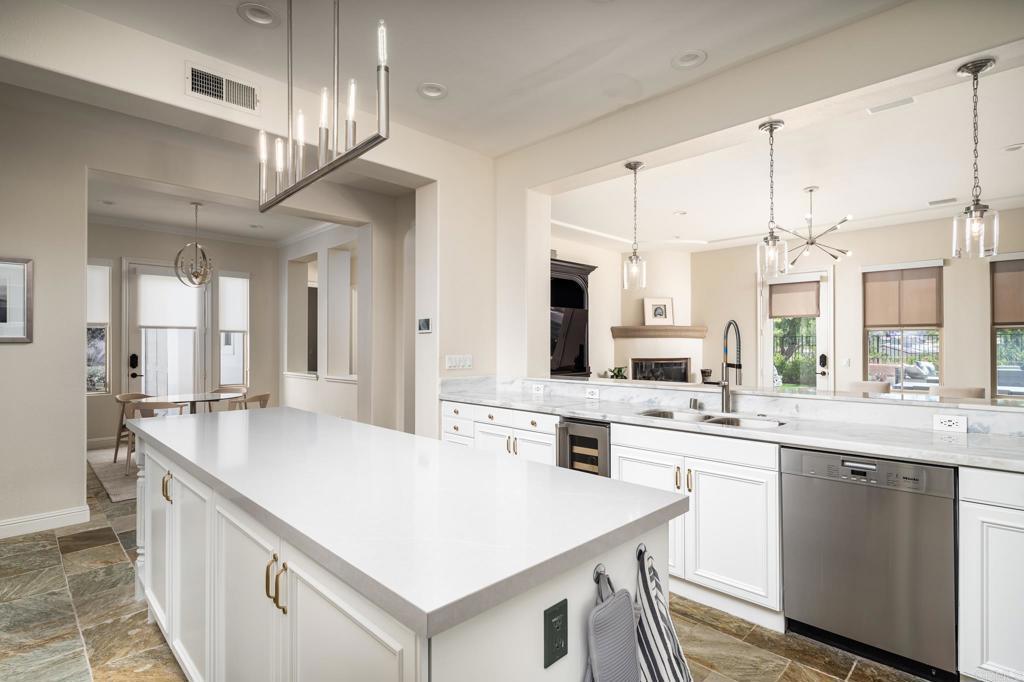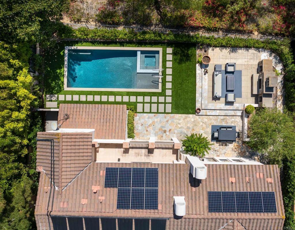 Nestled in the highly sought-after gated community of Mirasol, this beautifully updated 3,975 sq. ft. residence offers a light-filled, open floor plan ideal for modern living and entertaining. Set on a premium lot with mountain and countryside views, the home showcases timeless, neutral finishes and a thoughtful layout designed for both comfort and elegance. Upon entry, you're welcomed into an inviting space featuring high ceilings, custom architectural details, and high-end finishes throughout. The main level offers a formal living room with fireplace, an elegant dining room with built-in cabinetry and fireplace, an office/library, and a spacious family room that flows seamlessly into the gourmet kitchen. Perfect for any discerning chef, the kitchen features a large center island, stone countertops, top-tier stainless steel appliances, a butler’s pantry, wine storage, and a generous casual dining area. Doors open to a private outdoor oasis complete with a sun-drenched pool and spa, an outdoor fireplace, and multiple areas for lounging and dining—ideal for morning coffee, afternoon relaxation, or evening entertaining. Mature landscaping enhances the peaceful, resort-style ambiance. Upstairs, the expansive primary suite offers a private deck, a spa-inspired bath, and a large dressing room. Two additional bedroom suites and a versatile loft/bonus room provide flexible space for children, guests, or extended family. Additional features include: custom wood and stone flooring; designer lighting and fixtures; Rich woodwork and cabinetry; freshly painted interior and exterior; custom window treatments; whole-house and pool solar systems; gated motor court and 4-car garage with ample storage. Residents enjoy proximity to the lifestyle amenities of Santaluz, along with easy access to top-rated schools, fine dining, shopping, beaches, and major freeways.