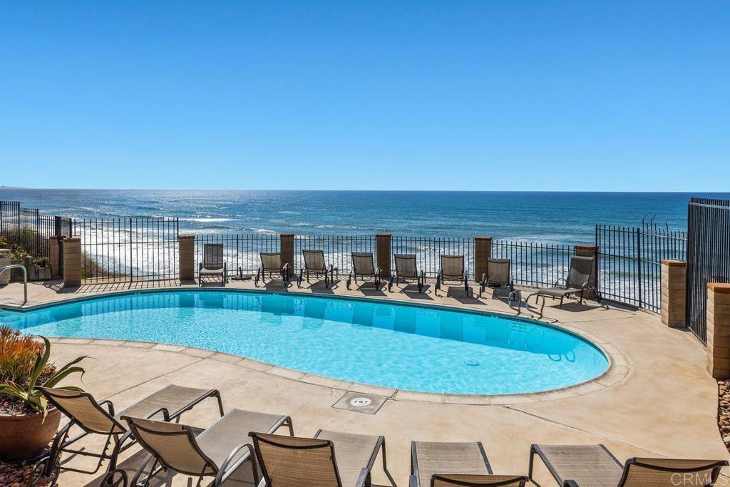 Welcome to this charming FULLY FURNISHED 2BD/2BA home nestled on the spectacular bluffs of SOLANA BEACH in the gated community of Del Mar Shores Terrace. Step inside this third floor unit to discover a thoughtfully designed open-concept living space. The kitchen features granite countertops and breakfast bar. Additional highlights include a cozy fireplace, multiple patios, and one dedicated space in the parking garage. Del Mar Shores Terrace offers ocean front panoramic views from the community pool/spa, newly renovated clubhouse, on site community laundry room and DIRECT beach access with stairs to the sand. Award winning school district! AMAZING location within walking distance to the Amtrak Train Station, Dog Beach, Fletcher Cove and Cedros Design District with boutique shopping, upscale dining, outdoor cafes and trendy art galleries. Don't miss this opportunity to enjoy resort style living at the beach year around! Available NOW for a 6 month lease!