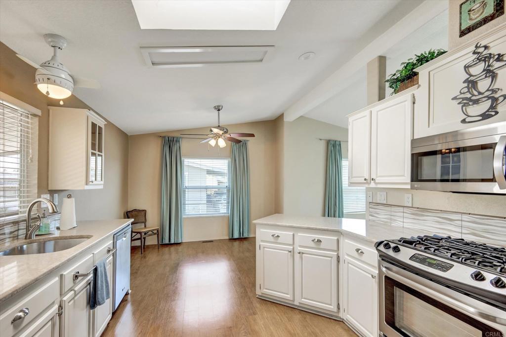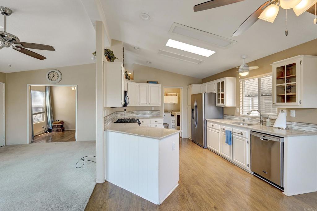 This 2004 Golden West 1200 SF 2 Bedroom (+ Bonus Room), 2 Bath (Both 3/4) Home resides within San Luis Rey Homes Resident OWNED 55 + Community. Land Ownership is involved. The low H.O.A. ($175/Mo) includes Trash, Sewer WATER & Park Maintenance. AND THERE IS NO SPACE RENT. This Beautiful & improved upon home boast, Solar (11 panels), newer Tankless Water Heater, Newer 16 Seer AC Central Unit, Generac Home Generator, an EV Charging Outlet, recently (2020) Exterior painted, Paver Driveway, Ceiling Fans throughout. Beautiful Stack Stone Front Planter. Double Pane Windows. EQ BRACING Quartz Kitchen Counters. The Maytag Washer & Dryer may remain. So can the ‘Counter Depth’ Whirlpool Refrigerator. SLRH Community Is conveniently located about 4 ½ miles from the ‘Sands & Pier’ of Oceanside. The Historic Mission San Luis Rey is ‘walking’ distance. Plenty of Shopping (Albertsons, Ralphs, Lowes, Vons, Stater Bros & Walmart for example. Nearby Medical such as Scripps Coastal, VA Clinic, Kaiser Office as well.