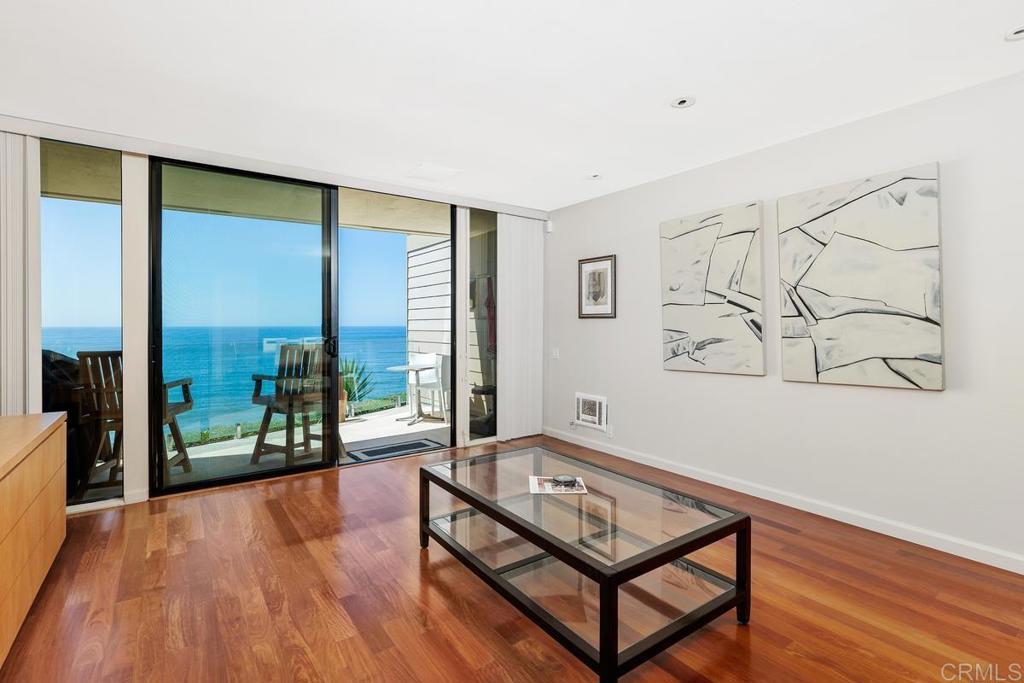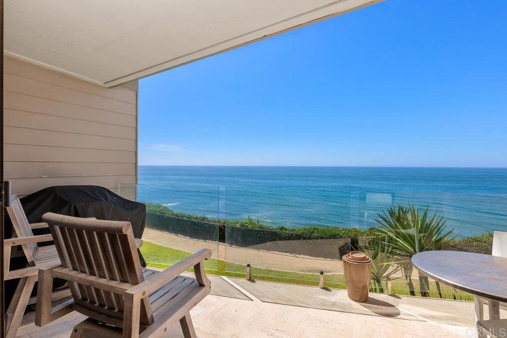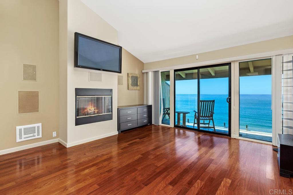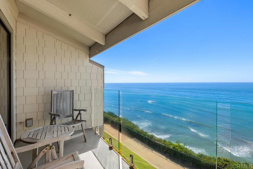 Wake up to breathtaking panoramic ocean views from this stunning oceanfront residence in the highly coveted Sandpiper Pointe community. Both the primary suite and the living/dining areas open to private balconies that overlook the Pacific—perfect for soaking in sunsets and sea breezes. Elegant hardwood floors throughout. Freshly painted walls with a light, coastal palette. Fully remodeled kitchen featuring top-tier stainless steel appliances, stone countertops, and a full-size wine refrigerator. Spacious primary suite with a cozy fireplace, soaking tub, custom-organized closet, and an in-room gourmet coffee station. Versatile second en-suite bedroom with a built-in office for remote work or creative pursuits. Convenient in-unit washer and dryer. Community Amenities include: Secure gated complex, Sparkling pool & spa, Well-appointed recreation room. Reserved underground parking space with additional private storage. Location Perks: A rare chance to own prime oceanfront real estate in the charming coastal village of Encinitas, where you’re just steps away from boutique shops, acclaimed restaurants, parks, and sandy beaches. This truly is a once-in-a-lifetime opportunity to embrace the coastal lifestyle with comfort, elegance, and unbeatable views.