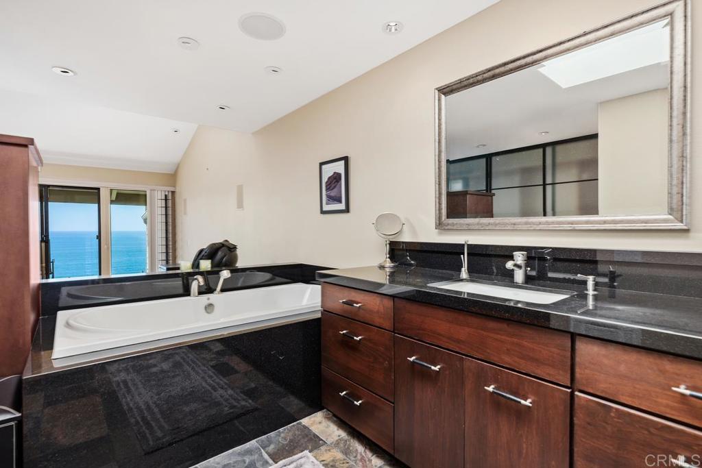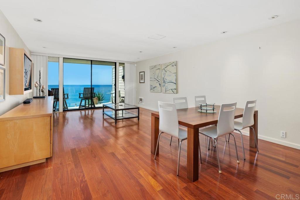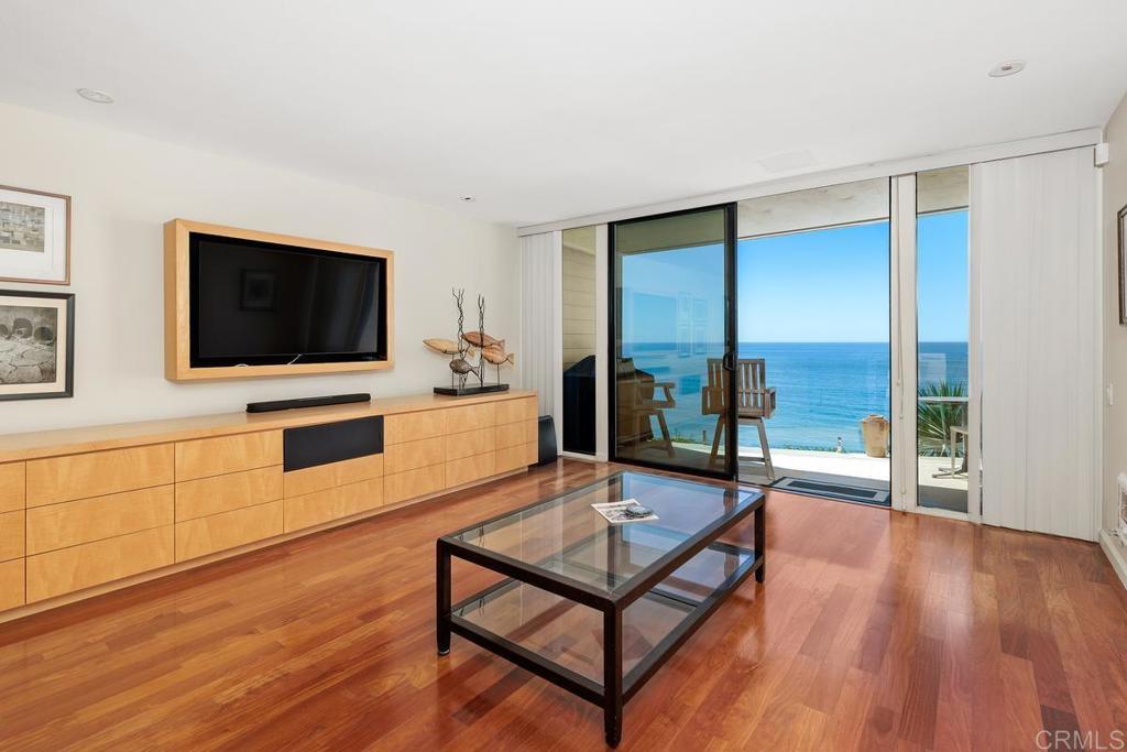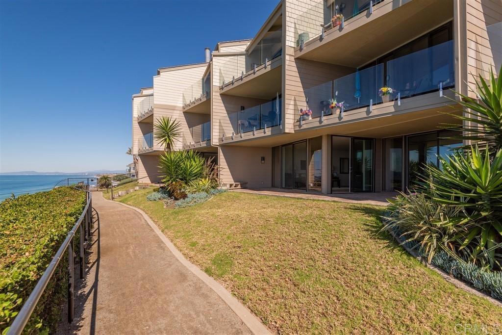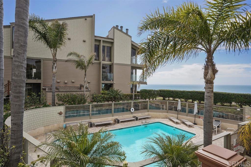 Wake up to breathtaking panoramic ocean views from this stunning oceanfront residence in the highly coveted Sandpiper Pointe community. Both the primary suite and the living/dining areas open to private balconies that overlook the Pacific—perfect for soaking in sunsets and sea breezes. Elegant hardwood floors throughout. Freshly painted walls with a light, coastal palette. Fully remodeled kitchen featuring top-tier stainless steel appliances, stone countertops, and a full-size wine refrigerator. Spacious primary suite with a cozy fireplace, soaking tub, custom-organized closet, and an in-room gourmet coffee station. Versatile second en-suite bedroom with a built-in office for remote work or creative pursuits. Convenient in-unit washer and dryer. Community Amenities include: Secure gated complex, Sparkling pool & spa, Well-appointed recreation room. Reserved underground parking space with additional private storage. Location Perks: A rare chance to own prime oceanfront real estate in the charming coastal village of Encinitas, where you’re just steps away from boutique shops, acclaimed restaurants, parks, and sandy beaches. This truly is a once-in-a-lifetime opportunity to embrace the coastal lifestyle with comfort, elegance, and unbeatable views.