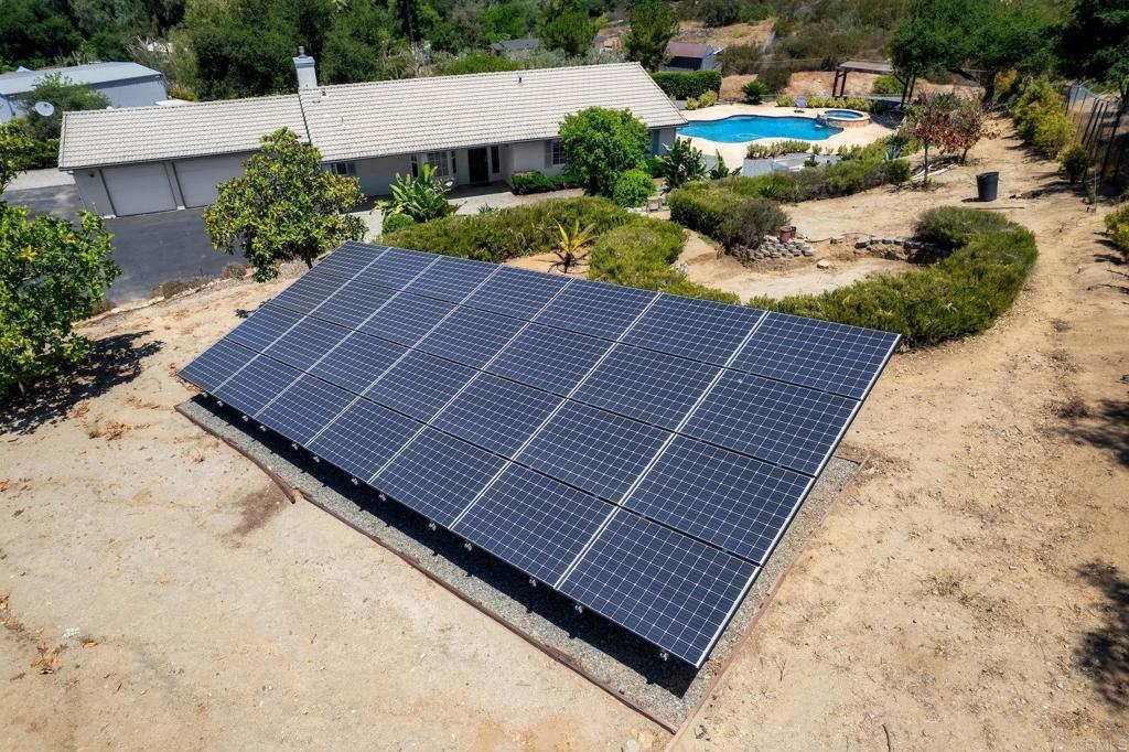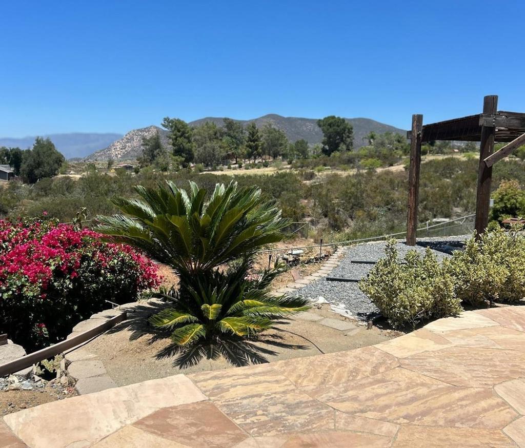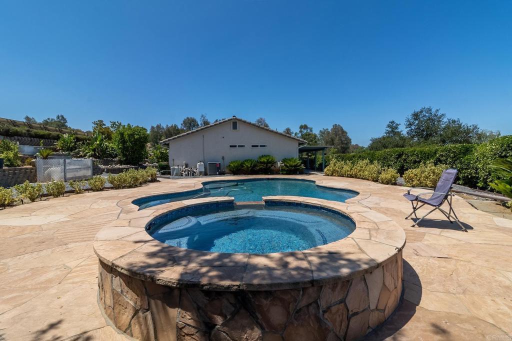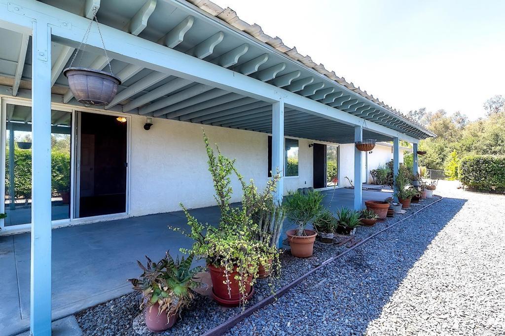 Private property for sale in rural Valley Center, 10 minutes from the entrance of town. Bring your family to this beautiful home on 2.28 acres of usable, fully fenced, flat land. Built in 1998, this 3-bedroom, 2-bathroom single-story house offers 1,572 square feet of living space, gorgeous views, a large pool (convertible to a heated pool) with a hot jacuzzi. The house is move-in ready and offers AC, a large kitchen with all appliances, and granite countertops. Relax outdoors amidst beautiful landscaping, a spacious back patio, and a charming wood rotunda. Save on the electricity bill with a PAID solar system. You’ll be amazed by the enormous 2,000 sq. ft detached structure, complete with electricity, exterior water access, and a private entrance with its own address, ideal for a car shop, storage, gym, office, hobby area, or any other purpose. The possibilities are endless! Close to the Valley Center Middle School, Valley View Casino, the iconic Bates Nut Farm, and fishing at Lake Wohlford. This spacious property offers functionality, sustainability, and ample private space, making it ideal for families. Welcome home to 18822 Possum Pass, Valley Center, CA 92082.