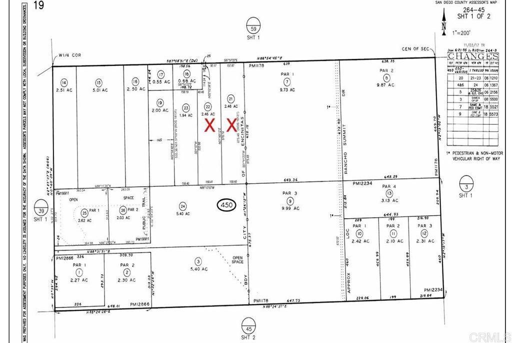 Set in Olivenhain’s scenic back country, this 2.46 acre lot offers mountain views and the pleasure of refreshing ocean breezes. Surrounded by prestigious estates in Knightsbridge and Shea Homes' "One Oak", this rare parcel presents a future building opportunity. An adjacent 2.45-acre lot is also available, allowing for the potential to own a combined 4.9 acres. Ideal for land banking until an access road is completed along the legal easement from Lone Hill. The property is located behind the gates of Knightsbridge, but it is not part of its Homeowners Association. Located within the City of Encinitas, this is a rare opportunity for a visionary buyer to secure prime Olivenhain land and take it through the development process. Buyer to cooperate with 1031 exchange.