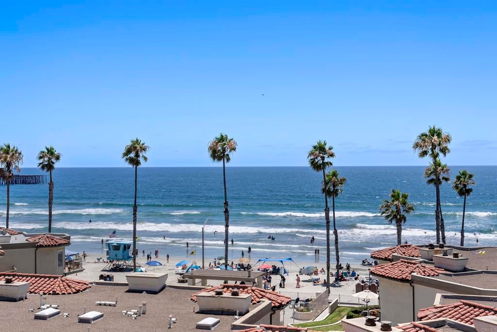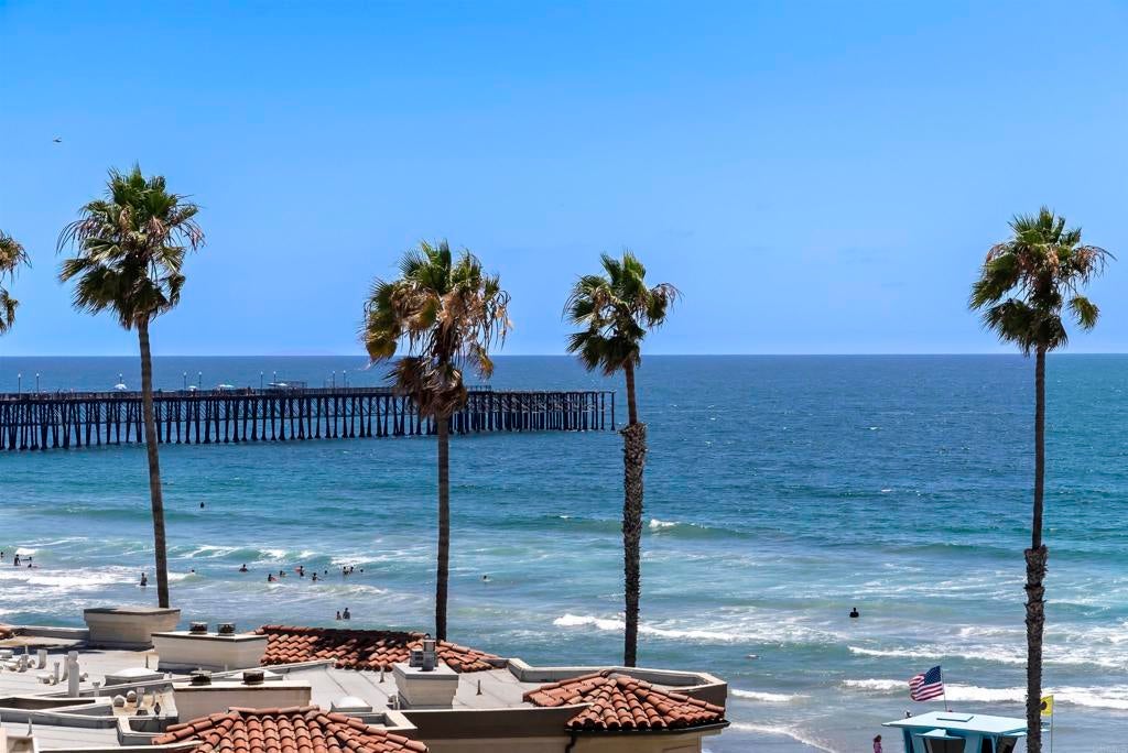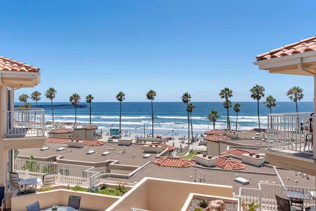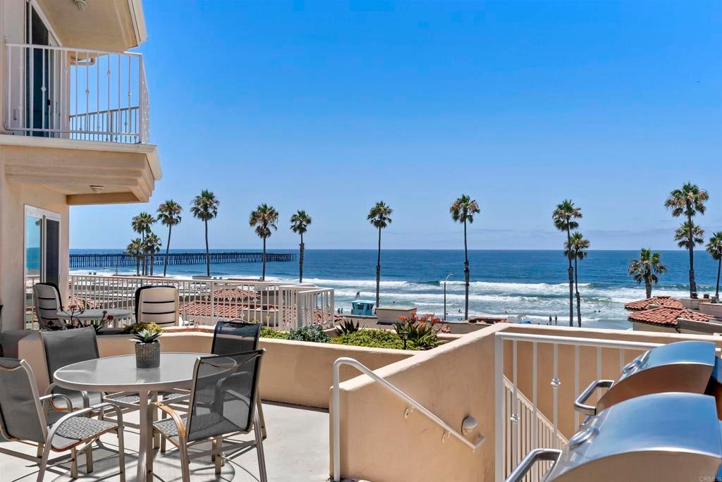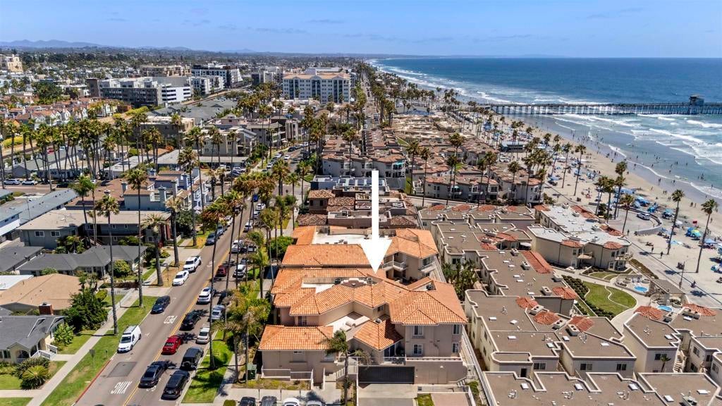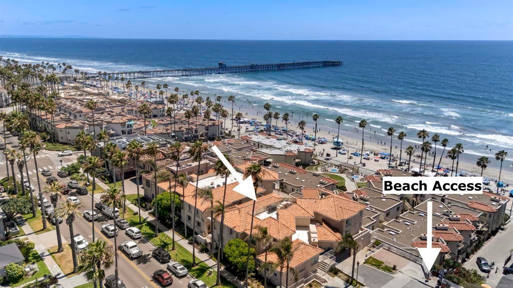 Start your mornings with blue ocean views and end your days with unforgettable sunsets over the Pacific. Perfectly positioned just north of the iconic Oceanside Pier, this stunning beach condo offers sweeping white-water views and effortless close by beach access—your personal front-row seat to coastal living. Step inside to an upgraded and move-in ready home where the Pacific Ocean is your backdrop. Catch ocean views from the open-concept kitchen and living room, or relax on your private balcony as the sun dips into the horizon. The primary bathroom has been tastefully updated with a large walk-in shower, adding to the refined coastal aesthetic. This two-bedroom, two-bath retreat is located in an intimate 15-unit gated community and features central A/C, in-unit laundry, two secure garage parking spaces, storage locker, and community bicycle storage room. Whether you're strolling to the beach, dining at nearby restaurants, sipping a coffee at a local café, or browsing boutiques and breweries, everything you love about Oceanside is just steps away. Community amenities include a shared BBQ and dining area perfect for summer evenings. Ideal as your primary residence or your personal getaway, this rare offering invites you to live the dream lifestyle—where every day feels like a vacation.