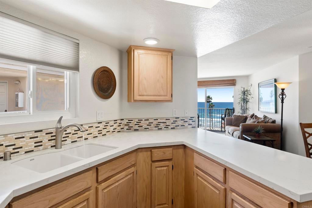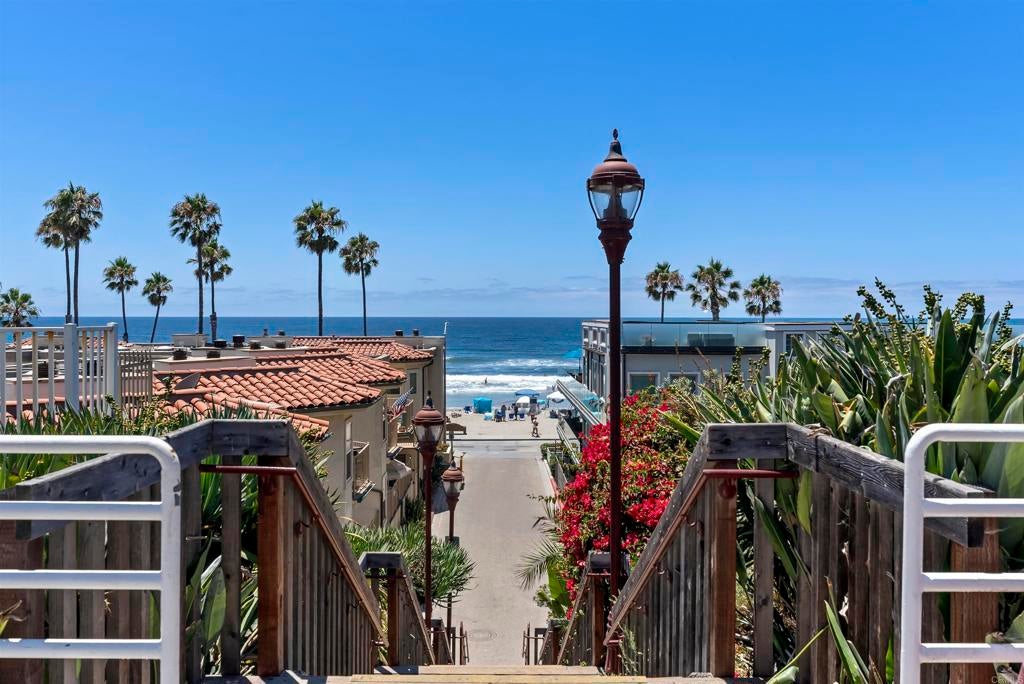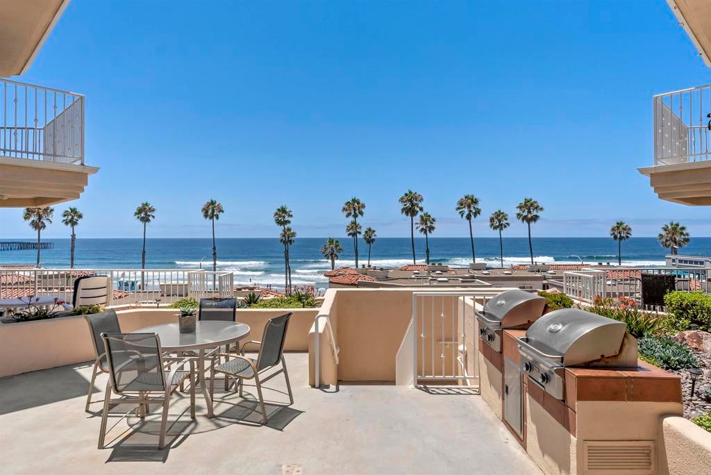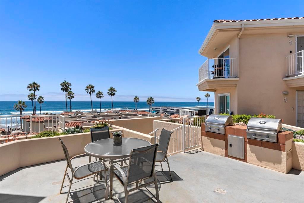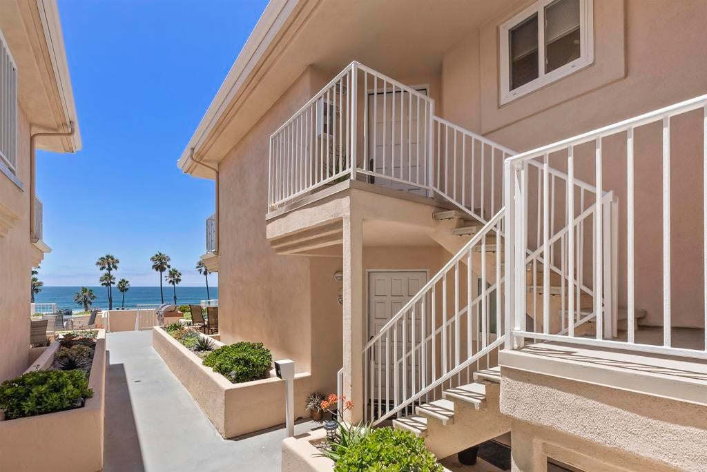 Start your mornings with blue ocean views and end your days with unforgettable sunsets over the Pacific. Perfectly positioned just north of the iconic Oceanside Pier, this stunning beach condo offers sweeping white-water views and effortless close by beach access—your personal front-row seat to coastal living. Step inside to an upgraded and move-in ready home where the Pacific Ocean is your backdrop. Catch ocean views from the open-concept kitchen and living room, or relax on your private balcony as the sun dips into the horizon. The primary bathroom has been tastefully updated with a large walk-in shower, adding to the refined coastal aesthetic. This two-bedroom, two-bath retreat is located in an intimate 15-unit gated community and features central A/C, in-unit laundry, two secure garage parking spaces, storage locker, and community bicycle storage room. Whether you're strolling to the beach, dining at nearby restaurants, sipping a coffee at a local café, or browsing boutiques and breweries, everything you love about Oceanside is just steps away. Community amenities include a shared BBQ and dining area perfect for summer evenings. Ideal as your primary residence or your personal getaway, this rare offering invites you to live the dream lifestyle—where every day feels like a vacation.