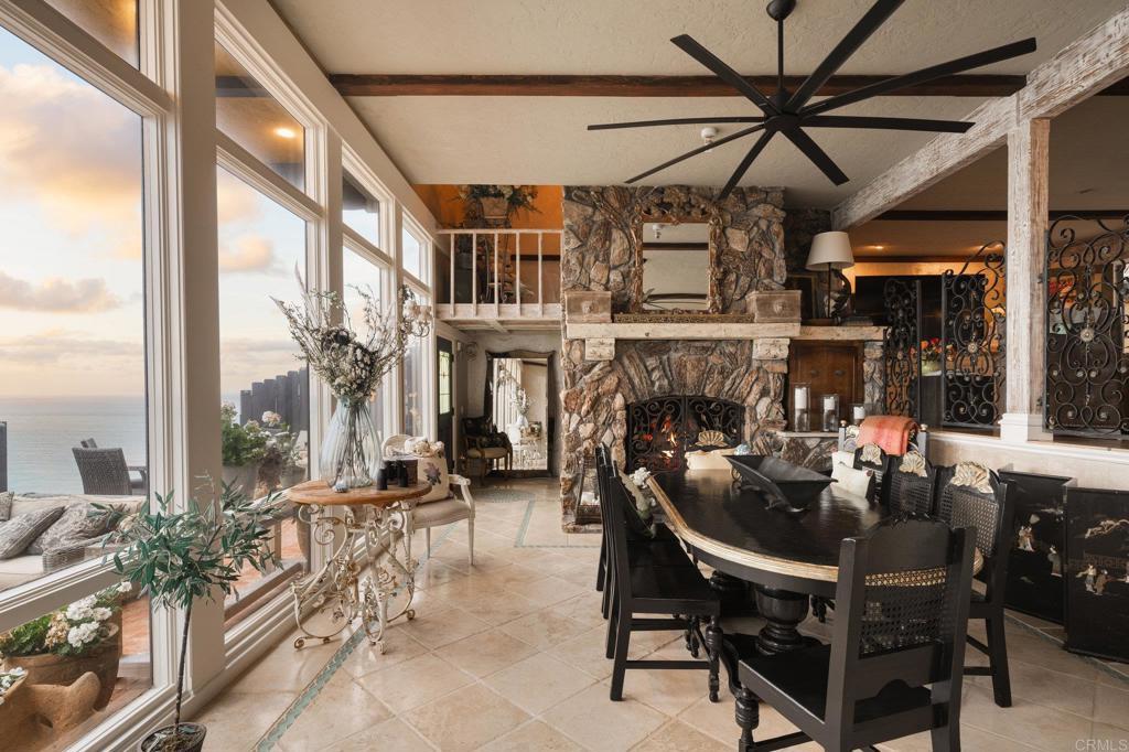 Sophisticated Oceanfront Estate located just steps from the vibrant heart of downtown Encinitas—yet perfectly tucked away, offering ultimate privacy and panoramic views high above the shimmering Pacific Ocean. This elegant legacy estate spans the length of the Oceanfront to Neptune Ave and offers over 6,800 square feet of refined coastal living. 6 spacious bedrooms and 6 luxurious bathrooms in the main home, multiple bonus rooms, a dedicated office, and architectural details that impress at every turn + Designer perfect 2bed/2bath guest house with separate entrance and fabulous designer kitchen. Soaring vaulted ceilings, bespoke woodwork, dramatic walls of glass, and exquisite onyx countertops create an ambiance of timeless sophistication. Enjoy the warmth of five grand fireplaces, dine alfresco in the serene, wind-protected garden courtyard with a wood-burning fireplace, or unwind on one of the many ocean-facing decks where every sunset feels like a private show. With a rare 5-car garage and an abundance of thoughtful design, this estate offers the epitome of Southern California luxury, endless living spaces for multi-generational living, and an abundance of splendor where every day feels like a five-star getaway.