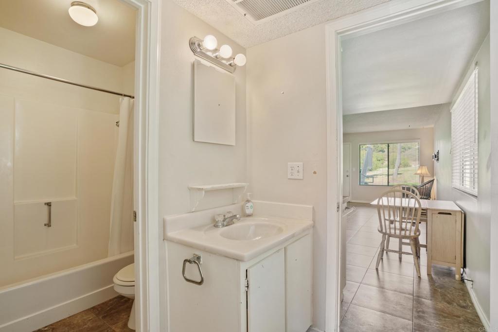 This Condo has lots of potential and the chance for you to do your own enhancements/upgrades. 1 bedroom/1 bath Condo in Hidden Meadows, Lower Outside Corner Unit (only one shared wall), overlooks the Boulder Oaks Golf Course with open space views. Tile flooring in Living Room/Kitchen/Bathroom and Wood flooring in the Bedroom. Two closets for ample storage, Patio space and Community laundry on site. There is 1 assigned parking space. Use of Hidden Meadows Community Pool and Tennis Courts for $396/year optional. Only 5 min to the 15 Fwy, close to shopping and CSUSM.