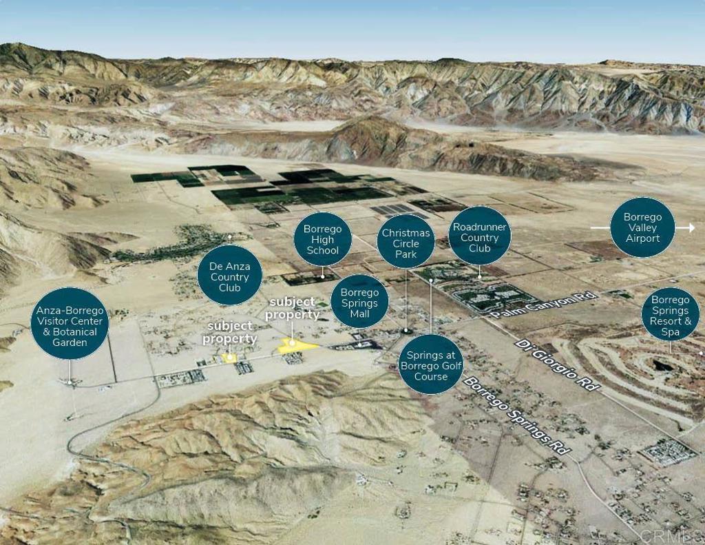 The subject property is located at 468 Palm Canyon Drive in Borrego Springs, CA. Six of the seven parcels are contiguous and located on the northwest corner of Palm Canyon Drive and Ocotillo Circle. The remaining, commercially zoned parcel is located on the northwest corner of Palm canyon Drive and Five Diamonds Road. The properties are in an excellent location in the heart of town along one of the main roads running through Borrego Springs. The property is just west of Road Runner Golf and Country Club and Springs at Borrego Golf Course, just south of Borrego Springs High School, and across the street from the Borrego Springs Mall and shopping center. All parcels are located outside of the flood plane, which is rare for properties in this location. The properties have various zoning, which allows the buyer flexibility and a long list of permitted uses including, but not limited to, single-family residential, mobile home park, group residential, group care, resort, community recreation, restaurant, convenience store, gas station, automotive sales and services, medical services, and much more.