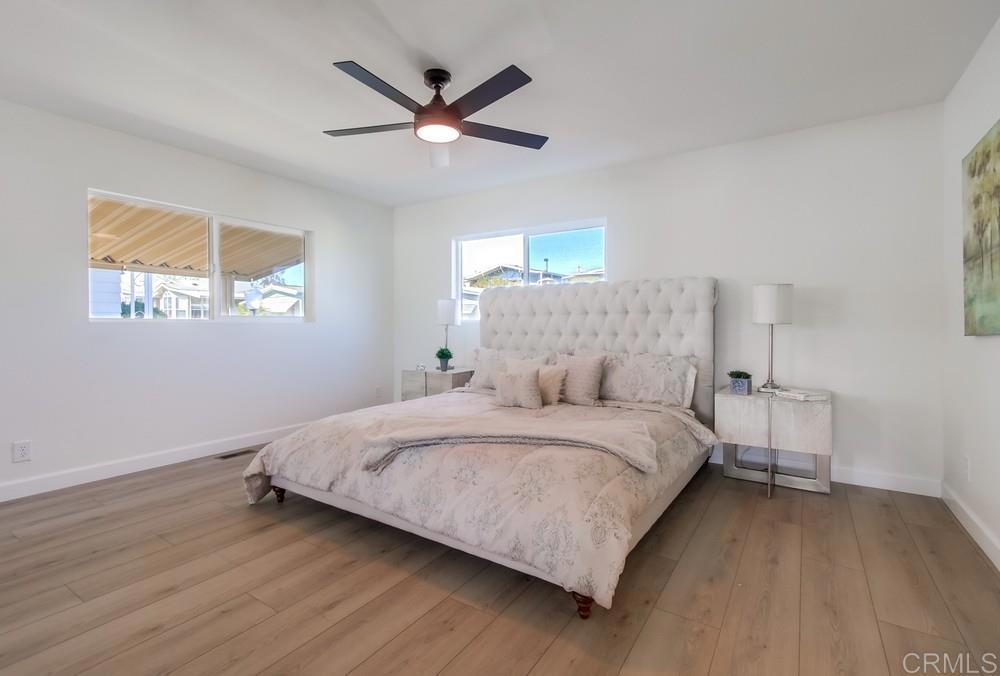 REMODELED, VIEW property located in a 55+ resort style community w/ rent control. This home offers an open floorplan where the inspiring panoramic views can be enjoyed from the Living room, Dining room, and Kitchen, as well as from the private custom deck! All new gourmet Kitchen featuring quartz counters, shaker cabinets, recessed lighting, full tile backsplash, a vent hood over the stove, new stainless steel appliances, a single basin stainless steel sink, and a spacious dining bar that makes a statement! Both Bathrooms have been remodeled and the Primary Bathroom features dual sinks, an extra vanity, and a huge custom shower with dual shower heads! New roof, new drywall interior, refinished ceilings, vinyl dual pane windows, luxury vinyl floors throughout, all new interior doors & fixtures, lever door handles, rocker light switches, and more! The Central A/C and furnace are newer and have been recently serviced. 3 brand new ceiling fans to circulate the great breezes! The exterior boasts easy to maintain turf and a storage shed. The treck deck wraps around the home and features a built in bench and bar top! There is also a private covered patio that runs along the other side of the home. Watch the 4th of July fireworks from your own home! Rancho Vallecitos is a beautiful, 5-Star, resort style community for persons 55 years of age and over (2nd resident can be age 45+). One of the most beautiful manufactured home communities in California, Rancho Vallecitos has great views that can be enjoyed throughout the community, plus many social activities and amenities. Amenities include a clubhouse/recreation building, pool & spa, library, gym, billiards room, card tables, game and craft room, putting green, dog park, RV parking for an additional cost, and so much more! Monthly space rent is $698.31 and park is under city rent control.