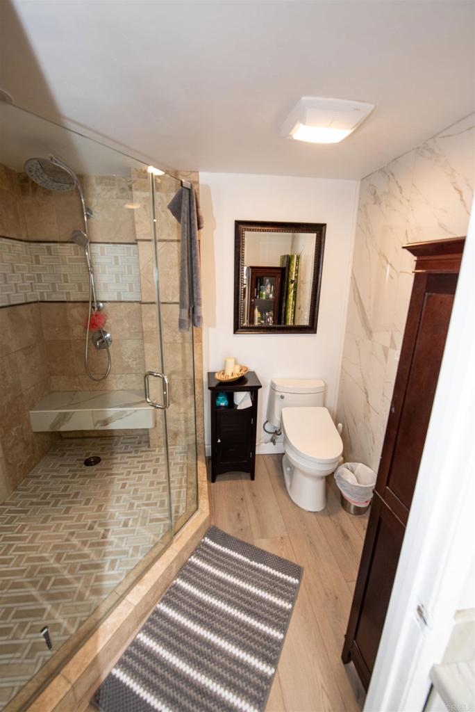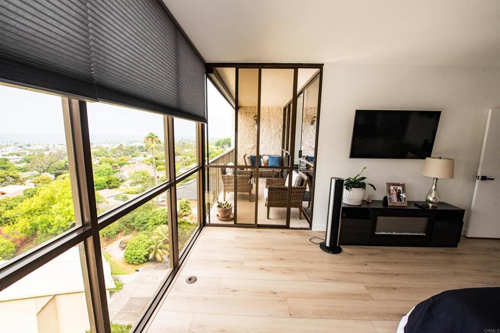 A unique jewel in La Jolla, this newly renovated condo on the ninth floor of La Jolla Shore Tower building provides luxury living with panoramic views of the Pacific Ocean, La Jolla Shores and city lights. It offers floor-to-ceiling glass doors and windows creating a bright and light environment and electronic shades when you want privacy. The kitchen and bathrooms have custom-made cabinetry and quartz counter tops. The recent renovation of this two-bedroom/two-bath unit includes special features like low volt track ceiling lights throughout the house, smart appliances, Kohler smart toilets, anti-Fog bathroom wall mirror with backlit and front lights, wall-to-wall premium vinyl flooring and a smart home control system using Siri and Apple phone. You have one assigned garage parking space with the possibility of renting additional spaces and ample guest parking. The building has resort style amenities: Luxurious lobby, recreation room, two tennis courts, heated pool and spa, gym, sauna and for your guests two suites you can reserve. La Jolla Shore Tower is a secure building with nearby access to beaches, restaurants, art galleries, theater, UCSD and the San Diego freeway system.
