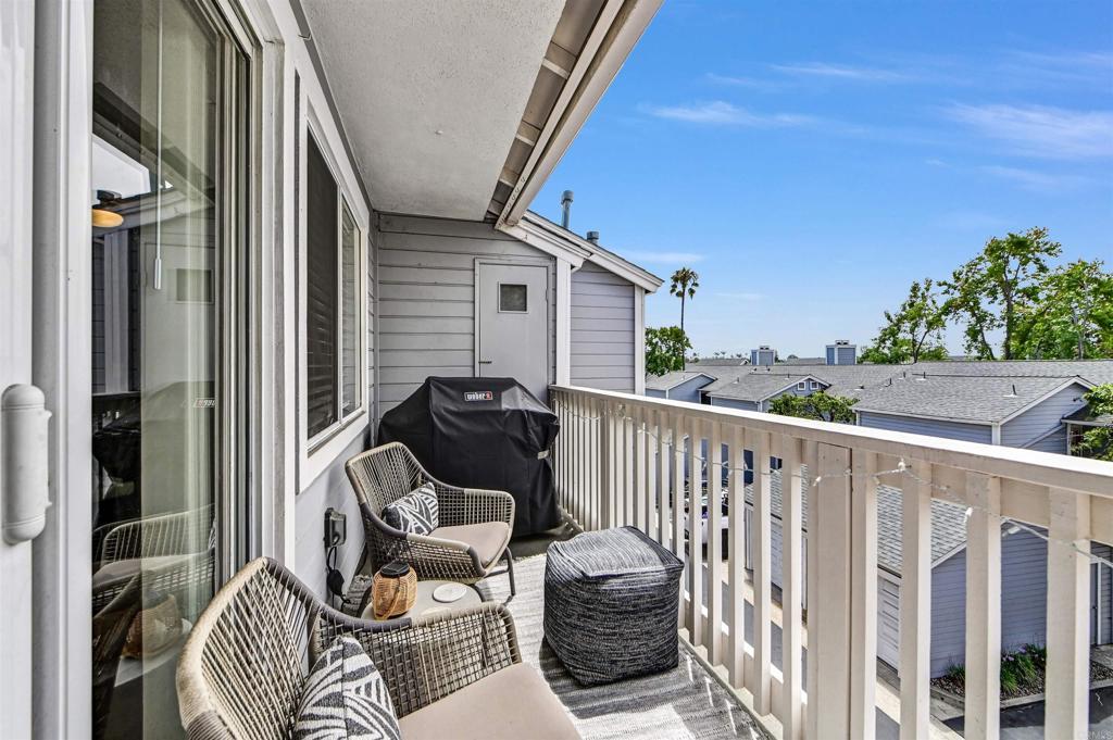 This tastefully renovated top-floor unit, updated just a few years ago, offers a bright, open floor plan with abundant natural light throughout. Enjoy the generous west-facing balcony—perfect for unwinding after a day at Moonlight Beach. Situated in the quiet rear section of the complex, this home offers both peace and convenience. You’re just a short walk to grocery stores, restaurants, parks, downtown Encinitas, the Ecke YMCA, and the beach, with easy freeway access for commuting. Inside, you’ll appreciate the convenience of an in-unit washer and dryer. A one-car garage provides storage for your beach gear, bikes, and more. Don’t miss the opportunity to experience the Southern California lifestyle at its finest. Buyer and buyer’s agent to verify all information prior to close of escrow.