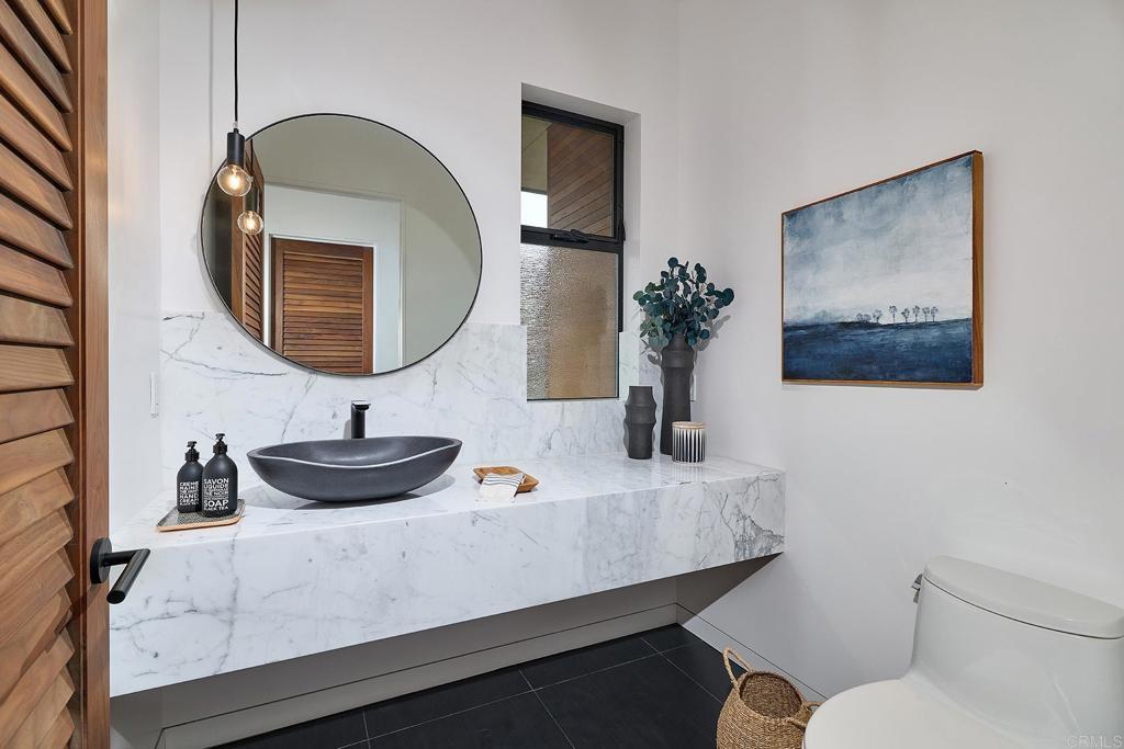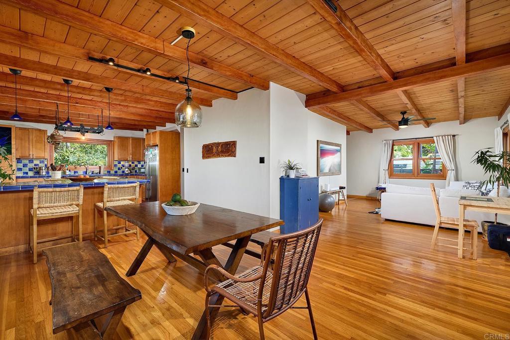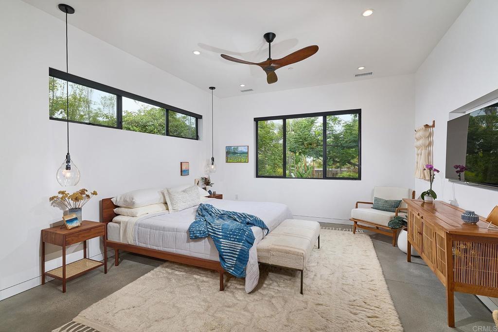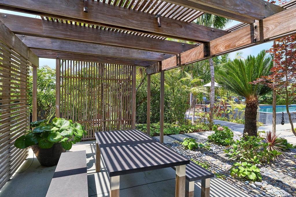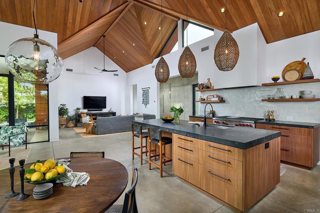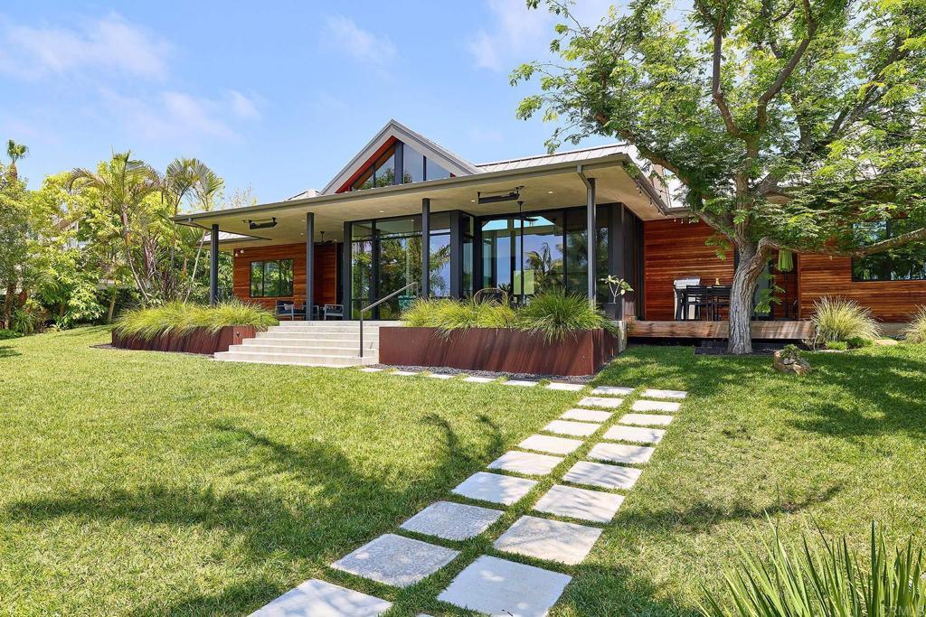 A rare offering, this secluded gated ¾-acre estate is a Contemporary Hawaiian-inspired sanctuary blending resort-style living, sustainable design, and uncompromising craftsmanship. The 2,571-square-foot main residence features two grand bedroom suites and spa-like baths, complemented by a detached 1,624-square-foot ocean-view guest bungalow with two additional bedrooms and baths. A separate private office and a detached garage, already plumbed with a half bath, expand the property’s flexibility and future potential. Designed for both intimate living and extravagant entertaining, the home centers around a striking chef’s kitchen with Sub-Zero and Wolf appliances, honed black granite, and a walk-in pantry. Walls of glass and soaring Epi wood ceilings create seamless indoor-outdoor flow to covered lanais, lush gardens, and a Balinese-inspired pool with outdoor lounge, waterfalls, firepit, and bale dining. Thoughtful sustainability—46 solar panels, EV chargers, chemical-free UV pool, and a whole-home water purification system—complements everyday luxuries like a skylit laundry, a curated mud room, surf shower, greenhouse, and mature fruit orchards. A private sanctuary of rare artistry and vision, this estate stands among Southern California’s most distinctive properties.