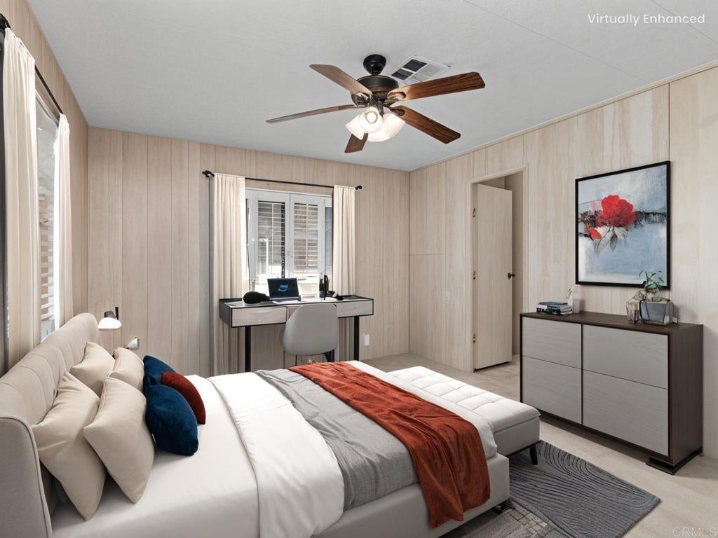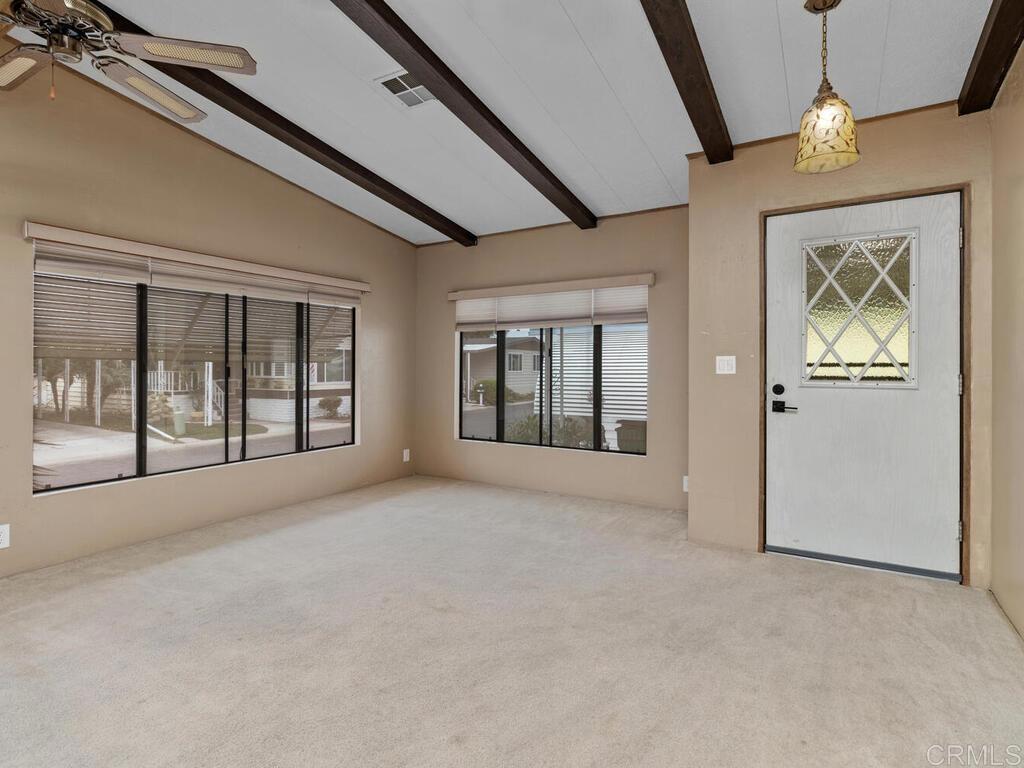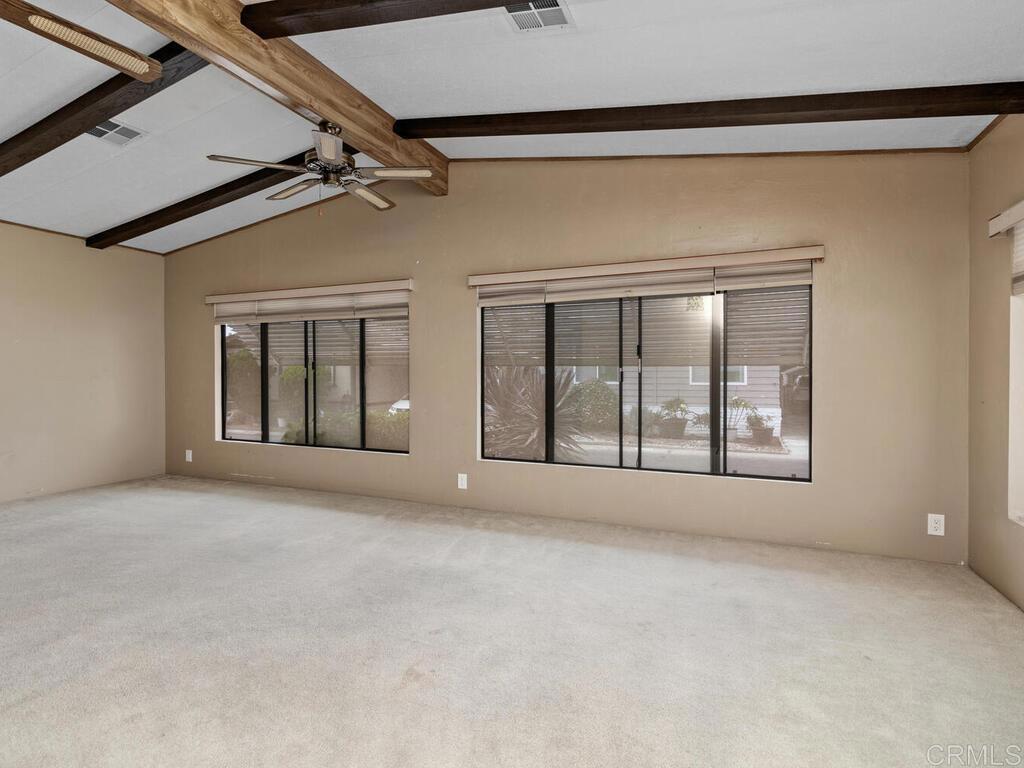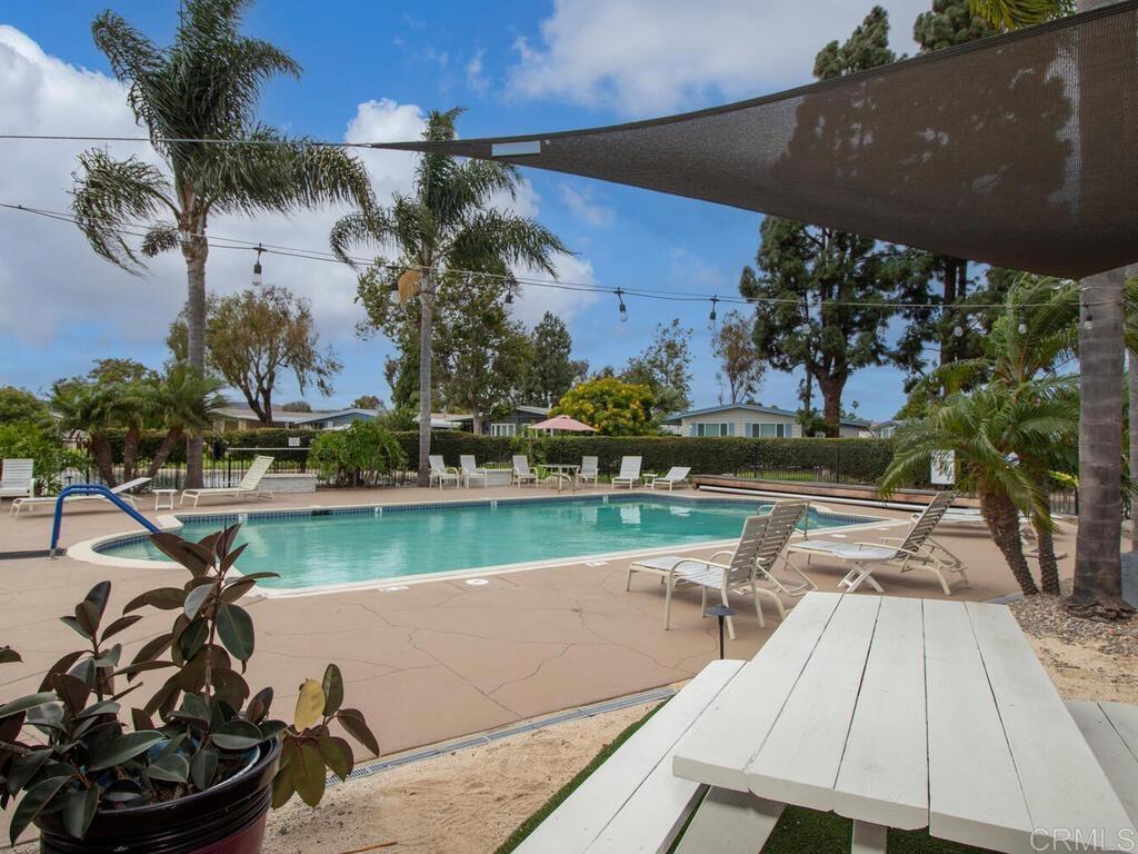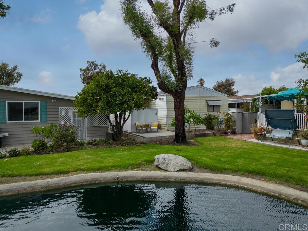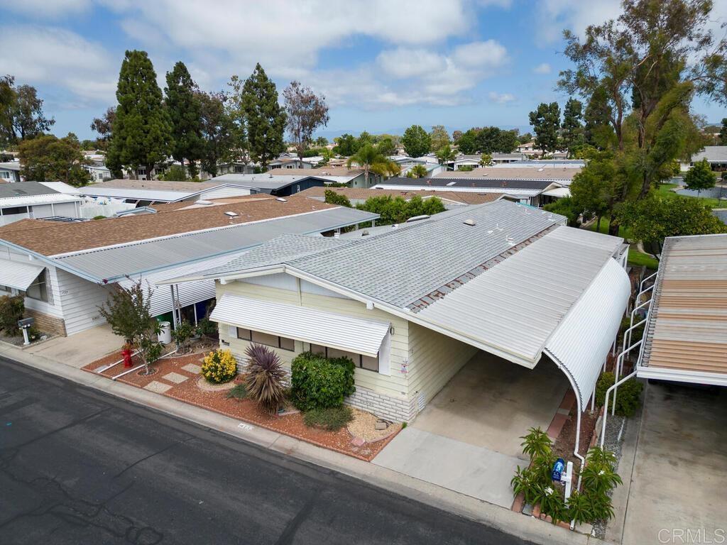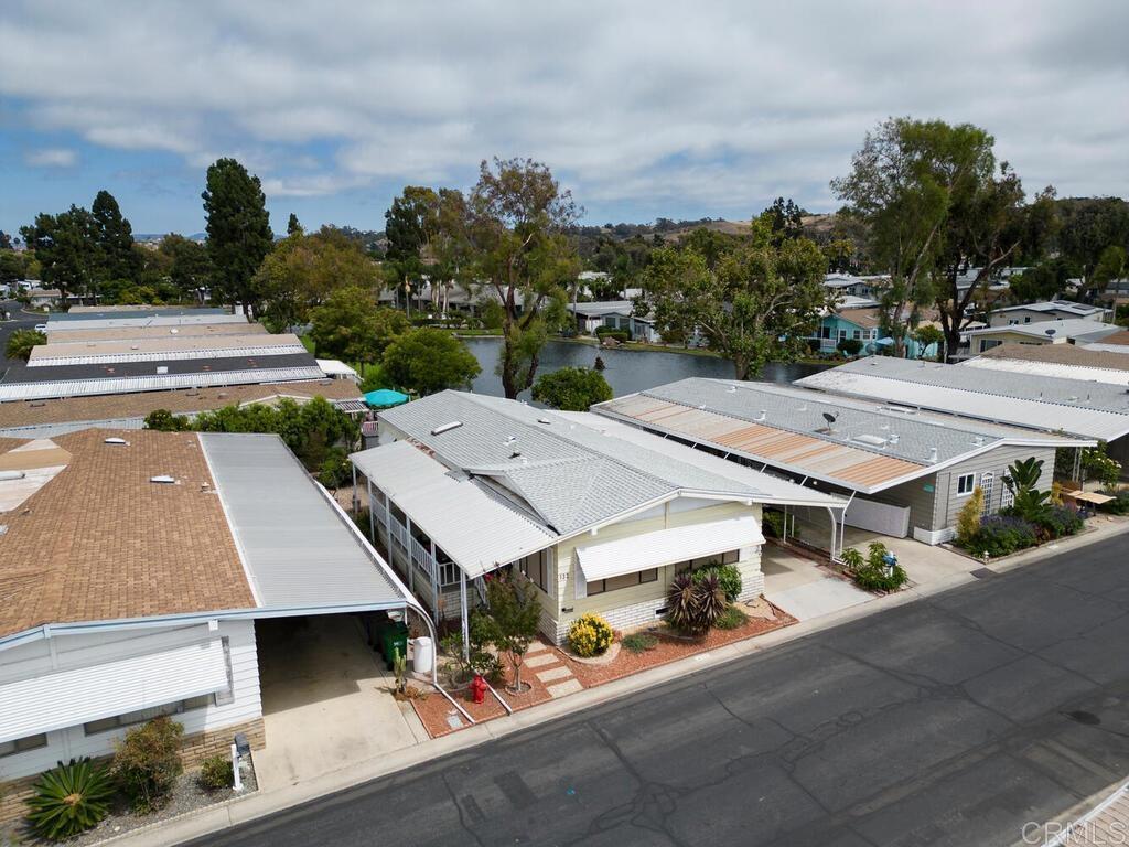 Nestled in the highly desirable Laguna Vista 55+ gated community in Oceanside’s scenic San Luis Rey area, this charming, manufactured home with lake views offers the perfect balance of comfort and coastal living. Built in 1981, the home features 1,536 sq. ft. of thoughtfully designed single-level living with two bedrooms and two full baths. The open floor plan feels bright and spacious, highlighted by vaulted ceilings in the living room and plantation shutters in the bedrooms that welcome natural light and refreshing ocean breezes. The generous living areas are ideal for both everyday relaxation and entertaining guests. Step outside to the private 10x10 patio slab at the rear of the home and enjoy serene views of the lake and fountain. Additional features include two storage sheds, curved awning poles to maximize carport parking, and a newer roof installed in 2022. Laguna Vista offers beautifully landscaped grounds with tranquil lakes, fountains, and a wide array of resort-style amenities including a community pool, spa, ballroom, shuffleboard, horseshoes, pool tables, reading library, and pickleball/tennis courts. Conveniently located just minutes from beaches, shopping, and dining, this home is a wonderful opportunity to enjoy the best of North County coastal living. Some photos have been virtually staged.