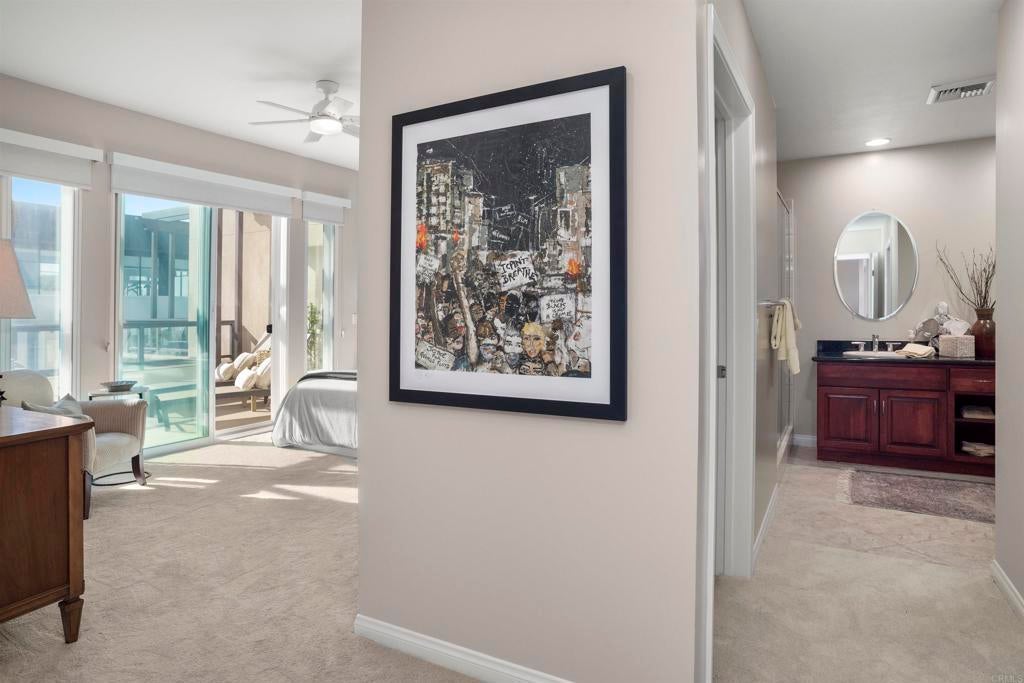 Location and views in downtown Oceanside! Prestigious top floor Penthouse in one of the most desirable buildings in all downtown Oceanside - Oceanside Terraces. Located in the heart of downtown Oceanside, only 2 blocks to the Pier and miles of golden beach, this luxurious residence is offered fully furnished and turnkey. This single level, 3 bedroom, 2 1/2 bath offers expansive views from the living area, both bedrooms, and from the oversized. (323 sq. ft.) huge lanai with firepit and BBQ that creates a perfect setting for indoor/outdoor living So Cal style! This pristine penthouse is adorned with hardwood floors, granite counters, stainless appliances, 2 fireplaces, laundry room, and dining area. The primary bedroom's ensuite bath offers a huge soaking tub, and large walk-in shower, along with an expansive walk-in closet. The bonus room with Murphy bed offers flexibility to be used as an office, den, or guest bedroom. The open and well thought out floor plan offers the residence and guests a perfect setting to relax and entertain. The entire living area is open to the Lanai via large sliders, as are both bedrooms. Breathe in the cool ocean breezes and relax in your private penthouse sanctuary with expansive views to the north and south. Amenities of the building include a jacuzzi, exercise room/gym, BBQ area, lounge area with large outdoor fireplace with a tropical/tranquil setting, and underground side by side parking for 2 cars. All of this in a secured private access building with 24-hour security. Everything is elevator accessible so no need to ever climb stairs, and all of this is within walking or biking distance to everything Oceanside offers, including the transit center only a block away with trains to LA and SD. Included with rent are all utilities, and once a month cleaning service. 4-9 month lease preferred, shorter leases negotiable at higher rates.
