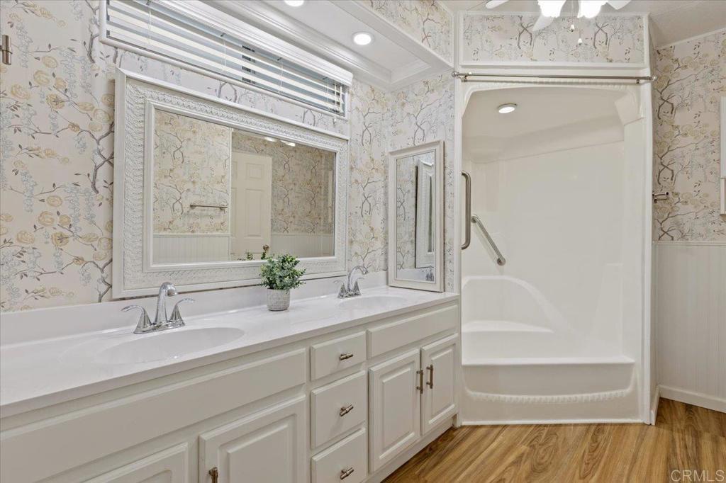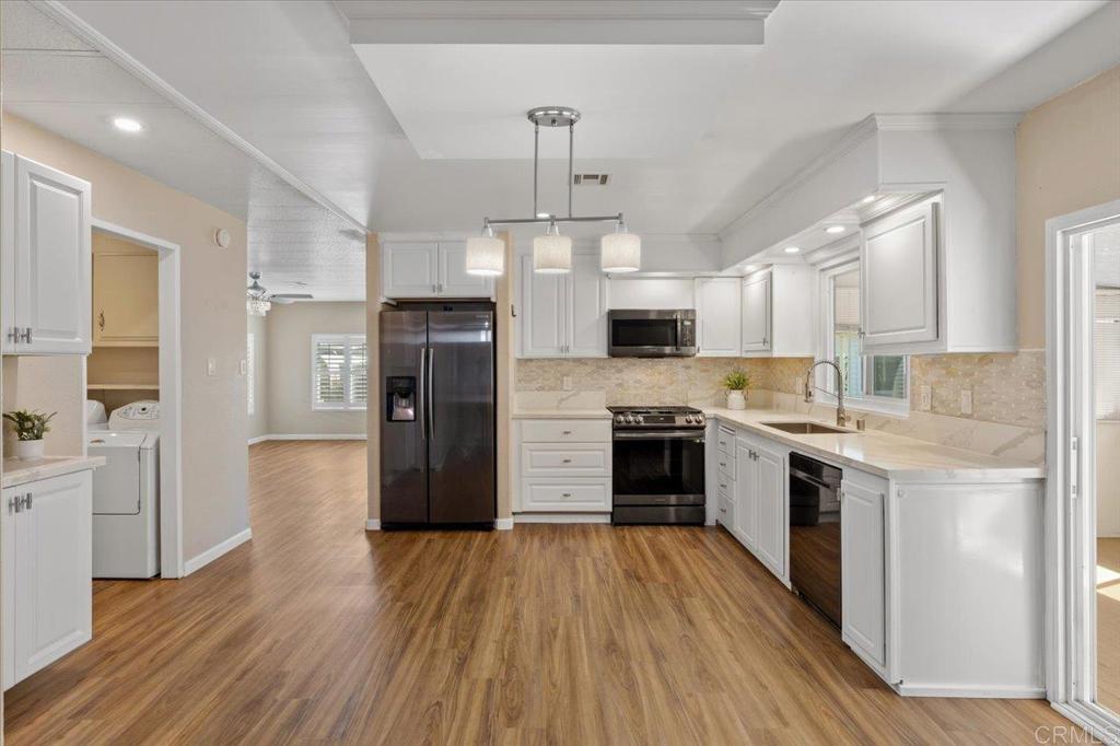 Beautiful, updated home that shows pride of ownership, located in a 55+ resort style community offering many recent upgrades, including: LVP floors throughout, remodeled Kitchen, updated Bathrooms, drywall interior, new interior doors & hardware, shutters, vinyl dual pane windows throughout (except bathrooms), both bedroom closets have been re-finished by Closet World, turf back yard that is great for pets, newer A/C, newer furnace, newer tankless water heater (all three replaced in 2017), and so much more! Some of the features of the new Kitchen include a new added pantry, newer appliances & farmhouse stainless steel sink, & deep pot pull out drawers. Separate Living and Family room, plus a large California room, offer lots of Living space plus plenty of extra space for an office & hobbies. The widened carport w/ privacy slats plus 2 storage sheds give ample space to park your vehicles and work on outdoor projects! Monthly space rent is $689.33.