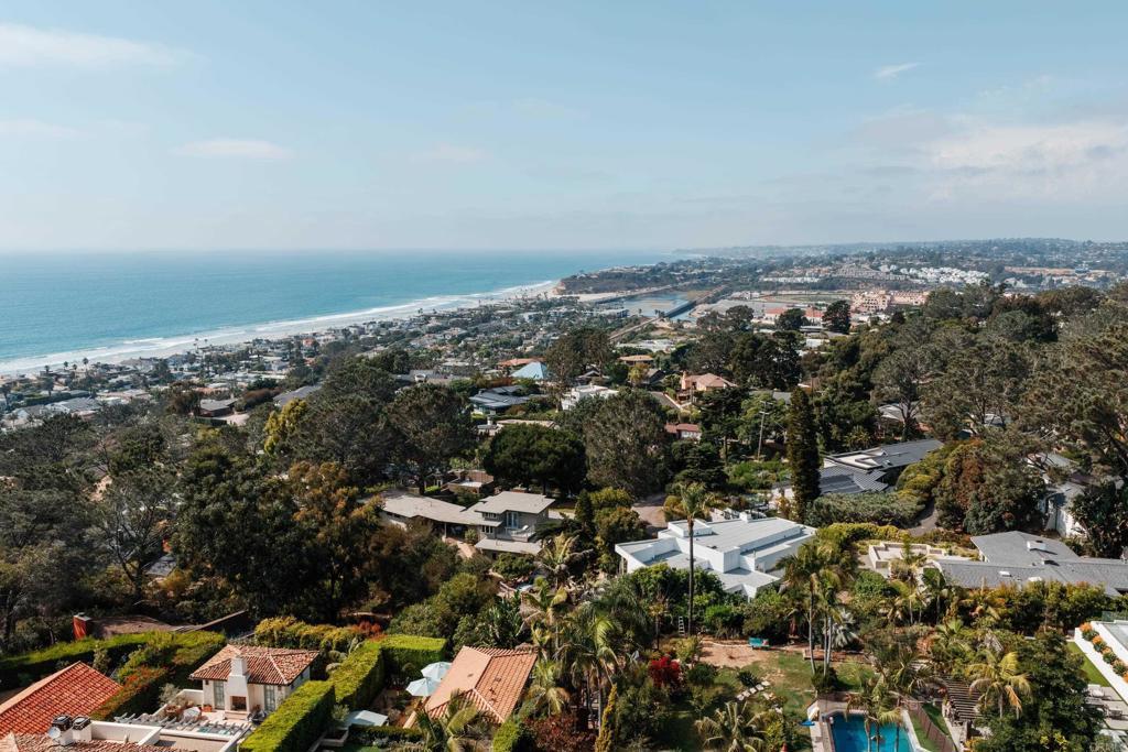 Chic Olde Del Mar Batter Kay contemporary with ocean views! The main level showcases a sophisticated open floorplan that creates seamless indoor/outdoor living. Privacy to the owners is maintained with this wonderfully elevated and secluded lot. Lovely walk to the Village of Del Mar along winding tree covered lanes, ending in the vibrant coastal town boasting fabulous restaurants and shopping. And, to top it off, the absolutely best beach in all of San Diego awaits.